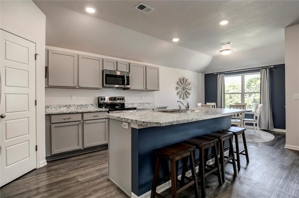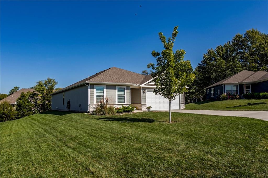 Enjoy easy one-level living in this spacious 3-bedroom, 2-bath ranch in a prime Paola location, just minutes from downtown, schools, and shopping. This nearly new, two-year-old home offers an open floor plan filled with natural light. The kitchen boasts a large island, abundant counter space, and a walk-in pantry—perfect for everyday living and entertaining. Retreat to the generous owner’s suite featuring a large walk-in closet and a bathroom with space for a future vanity or tub. Relax outdoors on the covered back porch and expanded patio while taking in peaceful views of the green space alive with wildlife.