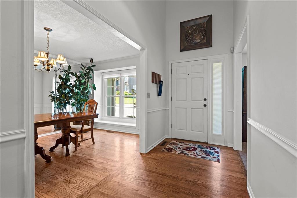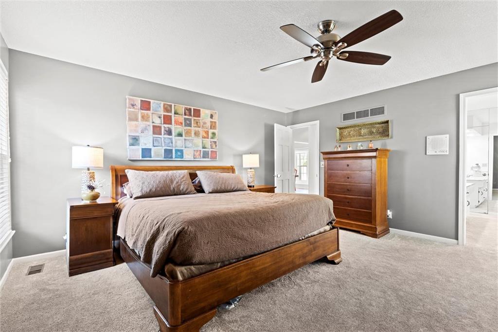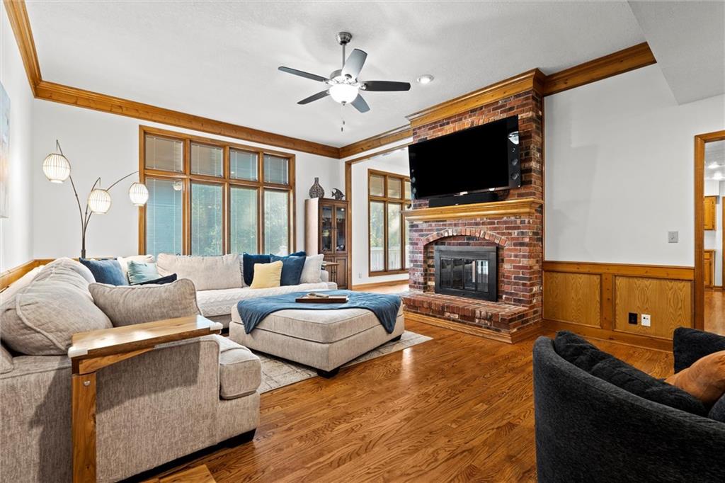 Beautiful & sought-after 1.5 story home with main floor primary suite! Fantastic location, curb appeal, large room sizes, immaculately maintained, brand new $50k composite deck & brand name fiber cement siding with fresh exterior paint - this is checking all the boxes! The entryway with vaulted ceiling creates a sense of grandeur the moment you walk in, but the warm wood floors and cozy accents instill an undeniable feeling of home. The spacious great room with floor-to-ceiling windows and huge brick fireplace is perfect for everything from entertaining company to curling up with your favorite movie. Around the corner the large hearth room, dining area and kitchen are sure to be the site of many wonderful memories around favorite meals, not to mention the large formal dining room. A coveted main floor primary suite with ensuite bath is complete with a walk-in closet, huge soaking tub, separate shower, and double vanity. The main floor office is also perfect for anyone working from home, or could be used as a playroom, sitting room or additional non-conforming bedroom. Upstairs, three more generously sized bedrooms and two full baths ensure plenty of space for family or guests. The sprawling, finished basement provides endless options for enjoyment. Welcome home!