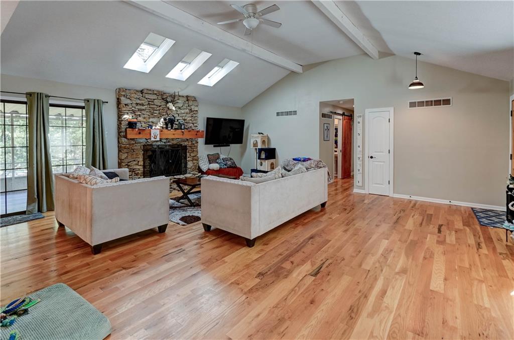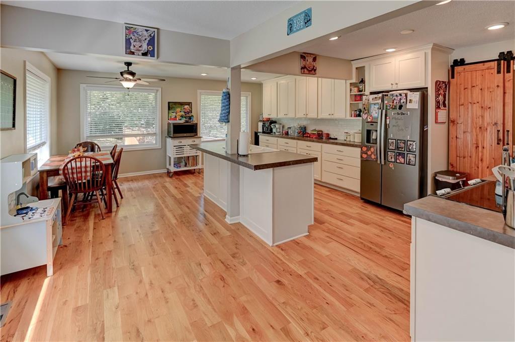 Fall in love with this stunning open-concept home offering convenient main-level living! The updated kitchen features ample cabinet space, while the spacious, modern bathrooms provide comfort and style. The finished basement adds extra flexibility for living or entertaining. New roof and gutters completed in 2024. This home is packed with recent updates that will save you money, including a new HVAC system (installed just 4 years ago), and new vinyl plank flooring. Enjoy your evenings in the screened-in porch overlooking a huge backyard complete with a newer privacy fence and fruit-bearing apple trees. Inside, large windows fill the home with abundant natural light. The lower-level room is already sheetrocked and could easily be finished as a 4th bedroom. Fantastic location—just 5 minutes from The Legends, I-70, and I-435, offering quick and easy access to anywhere in the city!