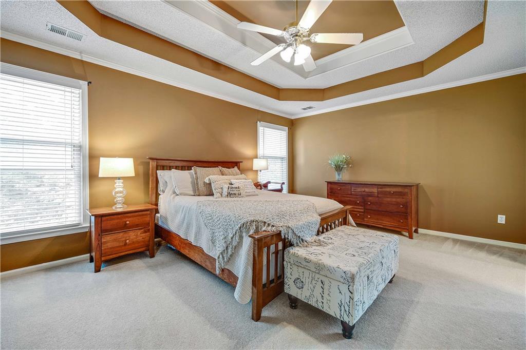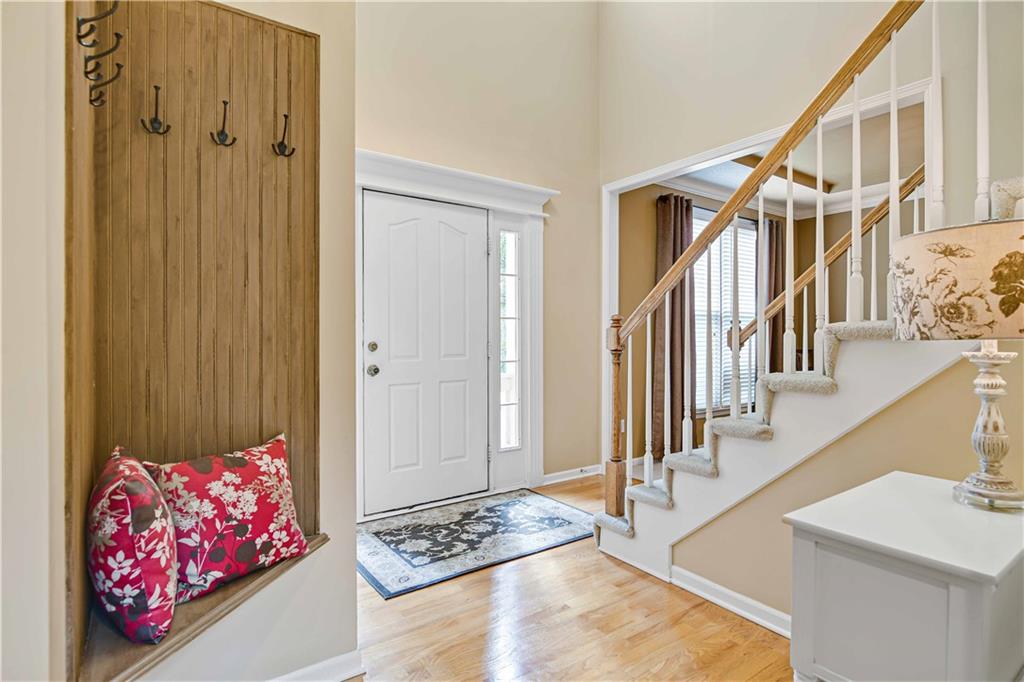 Perched atop a corner lot in the back of the coveted Northwood Trails Neighborhood, this 2-story is packed with ALL the upgrades and trimmings. Pride in ownership shines through every space from this one owner home. Love the outdoors? With this home's incredible custom sunroom addition, large covered porch, and tiered stamped concrete patio you can enjoy a low-maintenance retreat designed for outdoor leisure or entertaining guests all year long. As you step inside, you’re welcomed by soaring ceilings, and rich hardwood floors that flow seamlessly into this open-concept space. The kitchen transitions effortlessly into a spacious great room, where a striking fireplace creates a warm and inviting atmosphere. Formal dining room could easily be used as an office. Upstairs, an oversized master closet offers abundant storage, complemented by a generously sized hall bathroom and upstairs laundry room for added comfort and convenience. Light neutral tones throughout the interior lend a fresh, sophisticated charm, ready for your personal touch. The unfinished walkout basement expands your possibilities, featuring a RARE 3rd car side entry garage door... SO many opportunities for a hobby space / boat storage / home business... tailor it to your unique lifestyle! Never shovel snow again thanks to your southern facing driveway! Situated in a mature neighborhood, this home provides access to a refreshing community pool, picturesque trails—including the Gary Heller trailhead at the back, perfect for outdoor adventures—and a serene lake that enhances the natural surroundings. Served by the esteemed Olathe School District and just minutes from shopping, dining, and entertainment options, this move-in-ready property combines modern upgrades with timeless appeal. Don’t miss your chance to own this Northwood Trails gem—schedule a private showing today and envision the life that awaits you here!