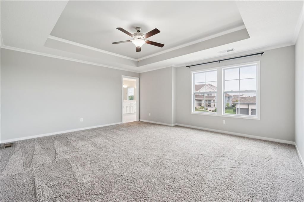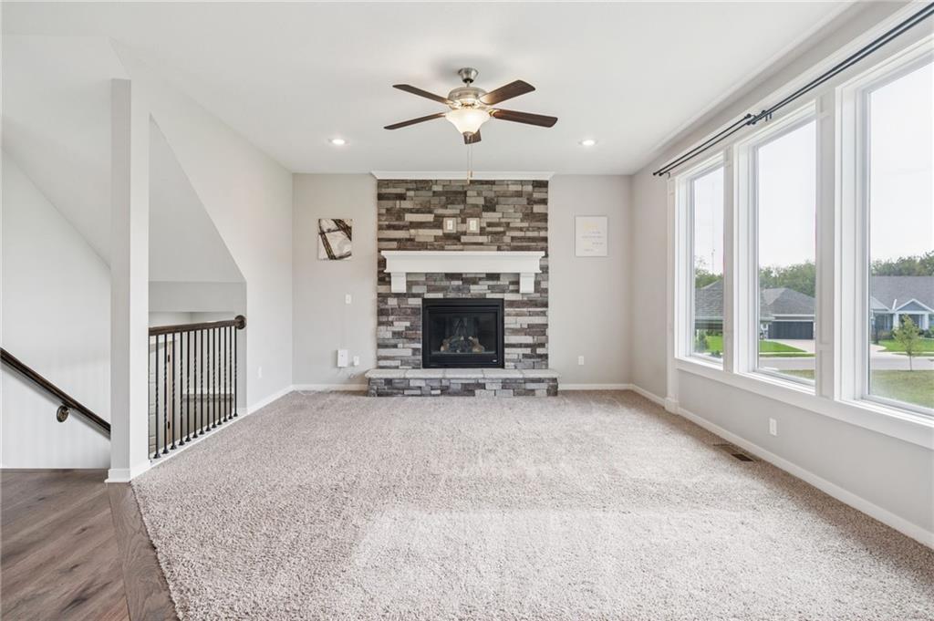 Prieb’s Paxton III is a beautifully designed two-story home offering 5 bedrooms and 4 full bathrooms, ideal for families of all sizes. The home features vaulted ceilings in the bedrooms and an open-concept layout that’s perfect for entertaining. The kitchen is a chef’s dream, with a large island with seating, apron sink, stainless steel appliances, and a walk-in pantry. Upstairs, a hallway with built-in bookshelves leads to a spacious master suite with double doors, a walk-in closet with direct access to the laundry room, and a luxurious master bathroom featuring a soaking tub, double vanity, and an expansive walk-in tile shower. Each secondary bedroom has private access to a bathroom, offering comfort and privacy. On the main floor, a flex room can serve as an office or fifth bedroom, conveniently located next to a full bathroom. The home also includes a mudroom with a boot bench, a sprinkler system, and a full basement that’s stubbed for a ¾ bath, offering potential for future expansion. This home seamlessly blends style, function, and comfort, making it a must-see for any family.