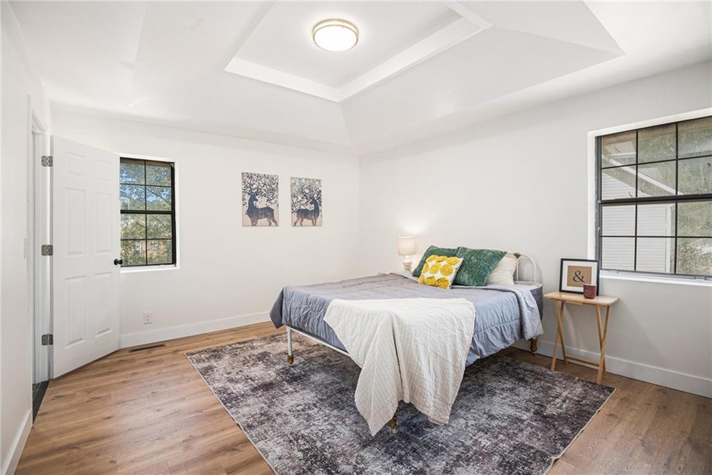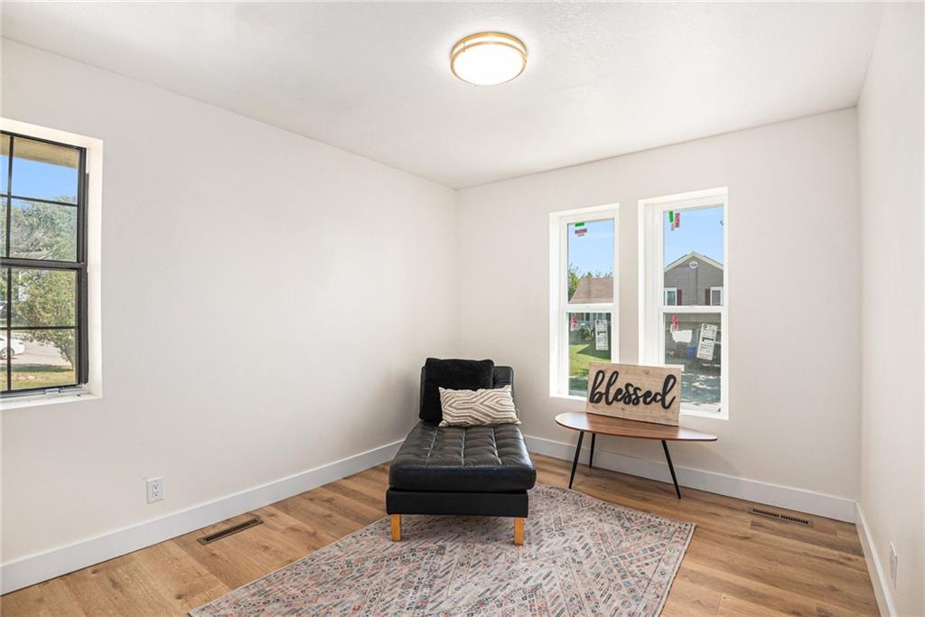 Refreshed with NEW LANDSCAPING, this beautiful 4-bedroom, 2.5-bath home is located in the sought-after Stonehaven South subdivision of Grandview! Featuring soaring vaulted ceilings and an open floor plan, this home blends modern updates with comfortable living. Step inside to a bright entry with stylish black iron railings leading up to a spacious living room anchored by a dramatic floor-to-ceiling brick fireplace. The brand-new kitchen boasts white shaker cabinets, quartz counters, stainless steel appliances, and brass accents—perfect for gathering around the bay-window breakfast nook. Both bathrooms have been tastefully renovated with sleek tile, quartz vanities, and modern finishes. The master bathroom features a custom shower with a double shower head and a walk-in closet. The walk-out lower level provides additional living space, a 4th bedroom, a half bath, and access to the oversized 2-car garage. Enjoy outdoor living on the private deck surrounded by mature trees. This home sits on a quiet street and is move-in ready with fresh paint and flooring throughout. 4 Bedrooms | 2 Full and 1 Half Baths New Kitchen & Baths Vaulted Ceilings & Fireplace Fresh Paint & Flooring 2-Car Garage
