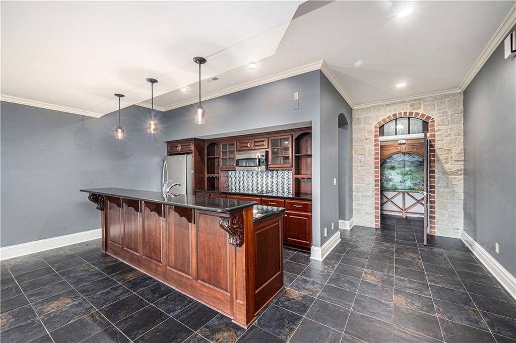 Stunning Custom 1.5-Story Estate at The National — Nearly 7,000 sq ft of Luxe Living! This extraordinary home features a 4-car garage and breathtaking floor-to-ceiling windows that showcase the best views of the golf course and water. As you step through the soaring entry, you'll be greeted by an open floor plan, designer chandeliers, exquisitely detailed trim, beautiful hardwoods, and crown molding. The gourmet kitchen is a chef’s dream, featuring exotic granite counters, soft-close cabinets and drawers, two new Bosch dishwashers, a Therador 6-burner gas range with griddle, Viking hood, Bosch double oven and warming drawer, a new refrigerator, beverage refrigerator, and a walk-in pantry. Slide open the glass doors to your outdoor oasis — a covered porch with a gas fireplace, expansive patio, and space to grill and relax. The main floor primary suite is a true retreat, complete with its own fireplace, frame TV, heated tile floors, a jetted tub, walk-in shower with glass surround, and walk-in closet. On the mail level there is also a study with a full bath, along with laundry area. Upstairs, you'll find three large bedrooms with walk-in closets, a bonus/gaming room, and second laundry. Walkout lower level is an entertainer’s paradise — an open recreation space, wet bar/second kitchen, wine cellar, fifth bedroom suite, second office or workout room with breathtaking green views, and unfinished storage space. Additional storage, or golf cart garage beneath the covered patio. A new 5-foot black aluminum fence with two gates provides privacy and security. All of this is nestled in the heart of KC’s premier country club, The National, featuring an exclusive 18-hole golf course, driving range, clubhouse, swimming pool, gym, tennis and pickleball courts, and a vibrant social scene. Plus, enjoy access to the second 18-hole course. Live the luxury lifestyle you deserve — this exceptional estate and community await!