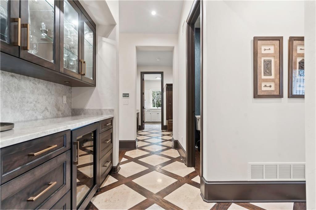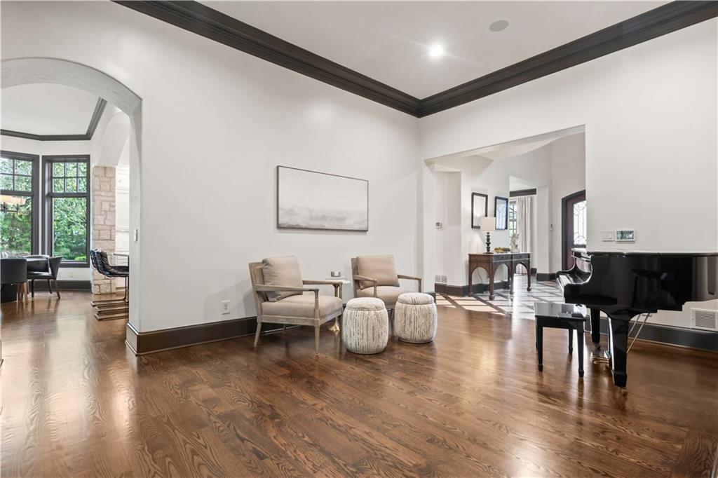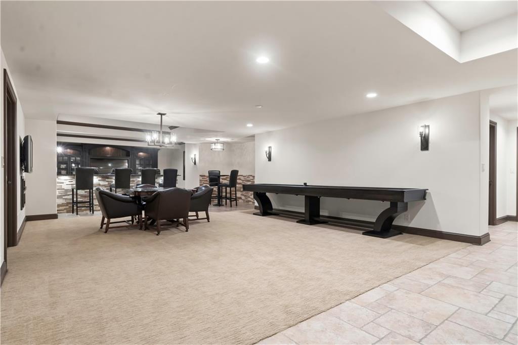 Exquisite 1.5-story home in Mission Farms that blends timeless elegance with modern updates on a beautifully landscaped lot. A dramatic staircase with custom ironwork, solid core doors, and upgraded trim showcase the craftsmanship throughout. The chef’s kitchen features quartzite countertops, custom cabinetry, and top-tier appliances, opening to a cozy hearth room. Formal dining and a spacious living room—ideal for a grand piano—flow seamlessly to a covered paver patio for effortless entertaining. The main-level primary suite is a private retreat with a spa-inspired bath and custom walk-in closet. A handsome office with fireplace completes the first floor. Upstairs offers three bedrooms with fresh paint, new carpet, and updated baths, plus a versatile loft. The lower level, finished by Rick Standard, is designed for entertaining with a full bar, media room, wine cellar, workout room, and fifth bedroom. Multiple outdoor living areas, a sport court, and large backyard provide space to relax, gather, or play. This stately estate offers luxury, comfort, and thoughtful design in one of the area’s most desirable neighborhoods.