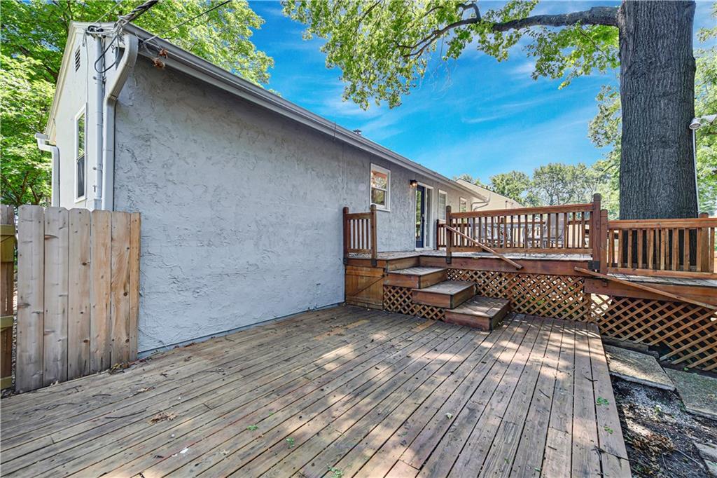 This inviting home features a classic layout with recently updated hardwood and tile floors on the main level. The remodeled eat-in kitchen offers granite countertops, ample cabinet space + pantry storage. A versatile side room can serve as a mudroom with walk-in pantry, a home office or a spacious dining area. Finished walkout lower level includes a recreation room, laundry, storage and possible third bedroom with full bath. A massive detached two-car garage provides exceptional storage, while the additional powered outbuilding is perfect for a potting shed, workshop, or even a fun backyard Tiki bar. Relax or entertain on the spacious two-level deck, ideal for BBQs and gatherings. Enjoy the walkable location near restaurants and shops, with quick highway access and the sought-after Shawnee Mission School District. Situated in friendly Downtown Overland Park, you'll have easy access to a vibrant array of local restaurants, shops and parks. Explore the OP farmer's market, stroll quaint Downtown shops, visit area historical attractions + museums. Boutique shop, or dine at one of the many nearby eateries – the possibilities are endless.