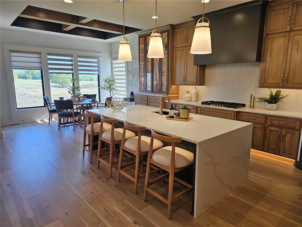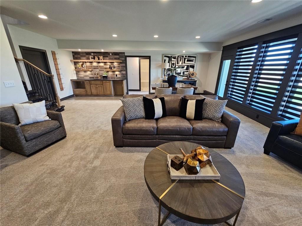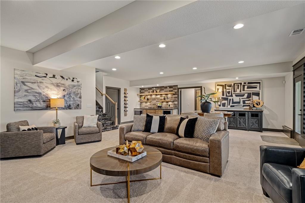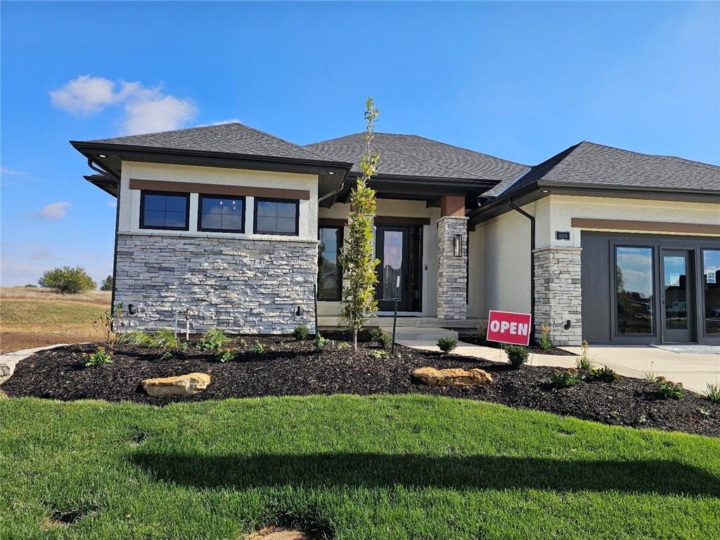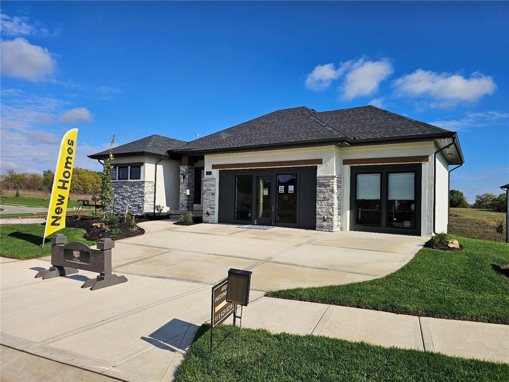 C & M Builders brings their fabulous Windsor Rev. 1.5 sty plan to Johnson Counties newest maintenance provided community of Prairie Canyon. Conveniently located just west of K-7 off of College Blvd., this model home currently not for sale features a wide & open entry that looks into a spectacular Great rm./Kitchen/Dining combo that include a corner FP, large island, huge walk-in pantry & mud room! Luxurious primary suite features a custom walk-in shower & huge walk-in closet. Main floor also includes a 2nd bedroom or Den. Finished walkout LL features a walk up wet bar, very spacious family, entertainment & recreation space, 2 generous bedrooms & a full bath. First floor covered deck w/FP and LL covered patio.
