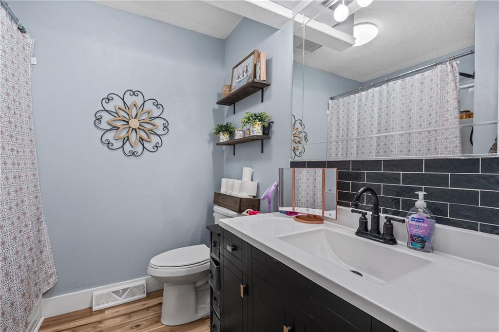 Well-maintained 3-bedroom, 2.5-bath raised ranch in a quiet Harrisonville neighborhood. This charming home features vaulted ceilings, a spacious living room with a stone fireplace, and tons of natural light. The kitchen opens to a dining/flex area, perfect for entertaining. The finished lower level includes a half bath and bonus living space—great for a playroom, office, or guest area. Enjoy a fenced backyard, large deck, and mature trees. Newer flooring, fresh interior paint, 2-car garage, and easy highway access. Move-in ready and full of potential!