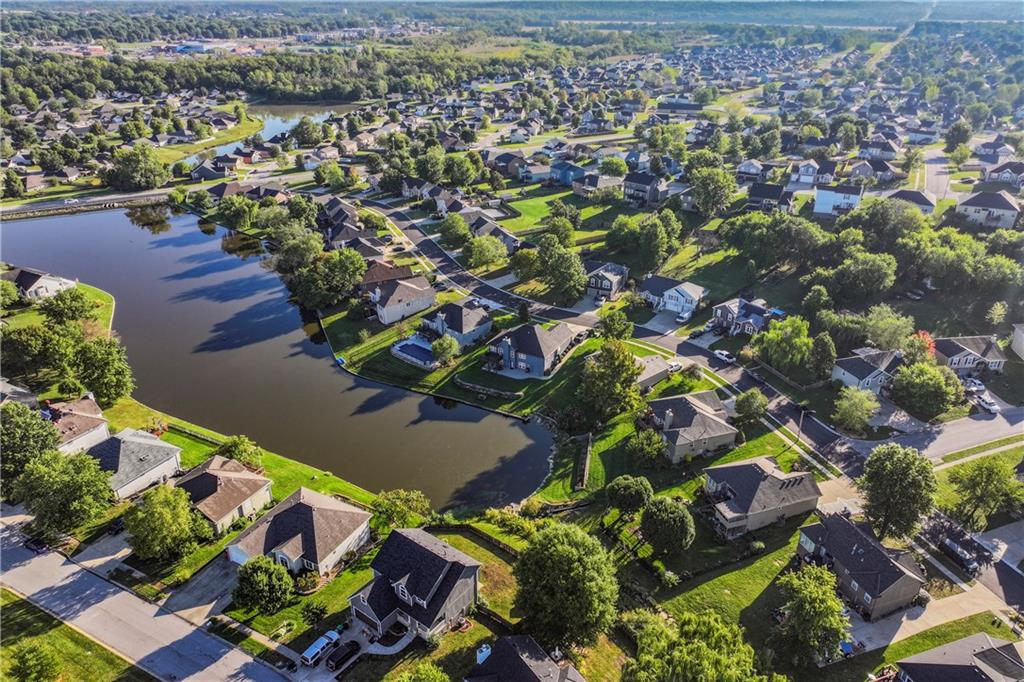 Beautifully maintained home in a sought after subdivision, on a beautiful lake. Watch blue herons and turtles from your own back yard! Great views, fun fishing and paddle boating. Seller has meticulously maintained and loved this home and is leaving you with nothing to do but move in and enjoy. Pride shows throughout, from the pristine, lush green lawn, to newer ext paint, newer upgraded impact-resistant 50 year roof, newer upgraded over-sized gutters, upgraded battery back up sump pump with ap, security system, smart thermostat, smart exterior lights. Cute front porch, with sidewalk around to the back yard and a beautiful stamped patio and a covered patio area with magical bistro lights. Workshop with double doors out to patio, huge rec room in the walk-out basement and the pool table stays! So much basement storage and potential to make it into something fun, as it was once a children's play room and fort!! 3 bedrooms, 2 up 1 down, with an office, 3 bathrooms, comfortable living room with never used gas fireplace! Spacious kitchen with large eat in dining area that walks out to the private deck where you will love to sit and gaze at the lake and enjoy the wildlife it brings in! One of the cleanest garages around with painted walls and floors. Home has many smart items; security system, ring doorbell, smart lights, smart sump pump, smart thermostat, seller will help new buyer transfer them all! Many gatherings were enjoyed in this home and you will love to enjoy it too!! Great floorplan, great home, great neighborhood, great schools, beautiful view! Move in just in time to celebrate the holidays and make some memories!