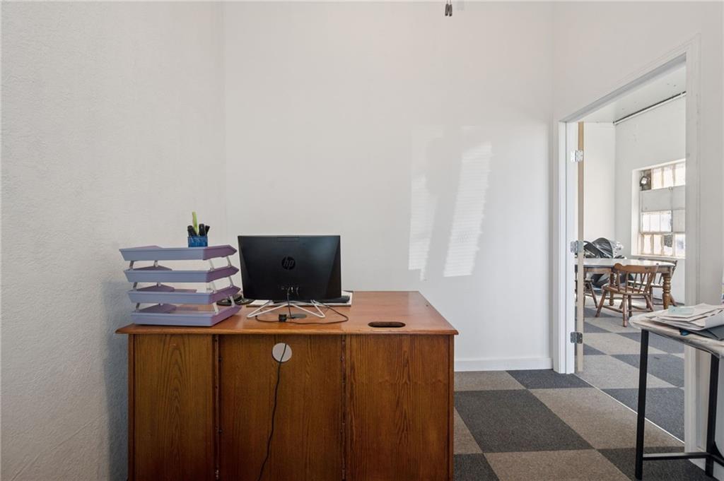 Construction yard with mechanic's shop and updated office, insulated service garage with huge lot to store your construction equipment. 0.37 acre fully fenced lot with good access. Remodeled office with restroom Attached service garage 12 ft clear height, twin 12 × 12 overhead doors, abundant storage, closed-cell foam insulation. All the power you could want. 200-amp single phase-ready electrical panel, along with 3 phase panel. Zoning is light industrial.