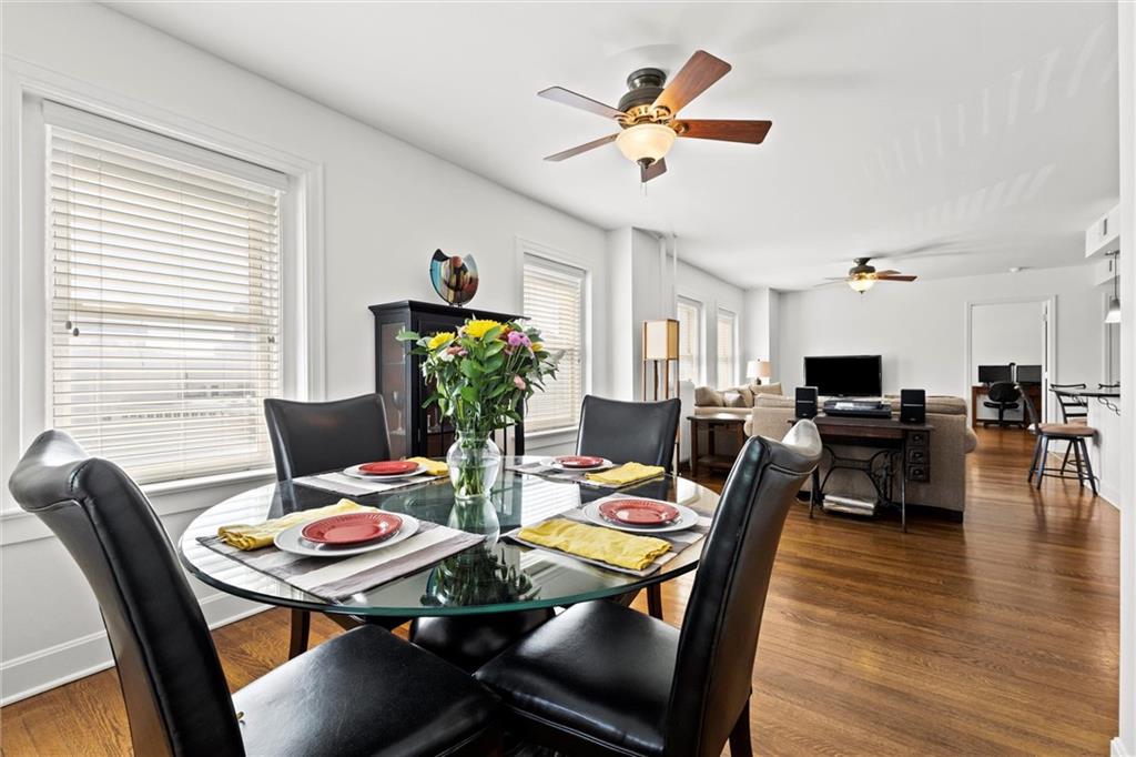 Across from the JC Nichols Fountain and Café Trio, this Plaza condo puts you right in the middle of it all. And starting October 24, the new KC Streetcar will stop just one block from the building, giving you a free ride to Whole Foods, Union Station, the City Market, and beyond. Plaza living with streetcar access this close doesn’t come around often. This corner unit offers over 1,200 square feet with 2 bedrooms and 2 baths. The layout is one of the best, with a bedroom on each end for privacy and an open center that ties everything together, perfect for entertaining. The kitchen features granite counters, stainless steel appliances, plenty of storage, and bar seating, opening to the dining room and spacious living area. Extra windows fill the space with light, and in-unit laundry means you never have to leave your condo to get it done. The unit comes with gated parking and a dedicated spot, an oversized storage unit, and low HOA dues that cover water, gas, snow removal, and more. Building amenities include a common party room and a shared balcony with tables, chairs, a grill and more. Units in this building don’t hit the market often, making this a rare opportunity in one of the city’s best locations.