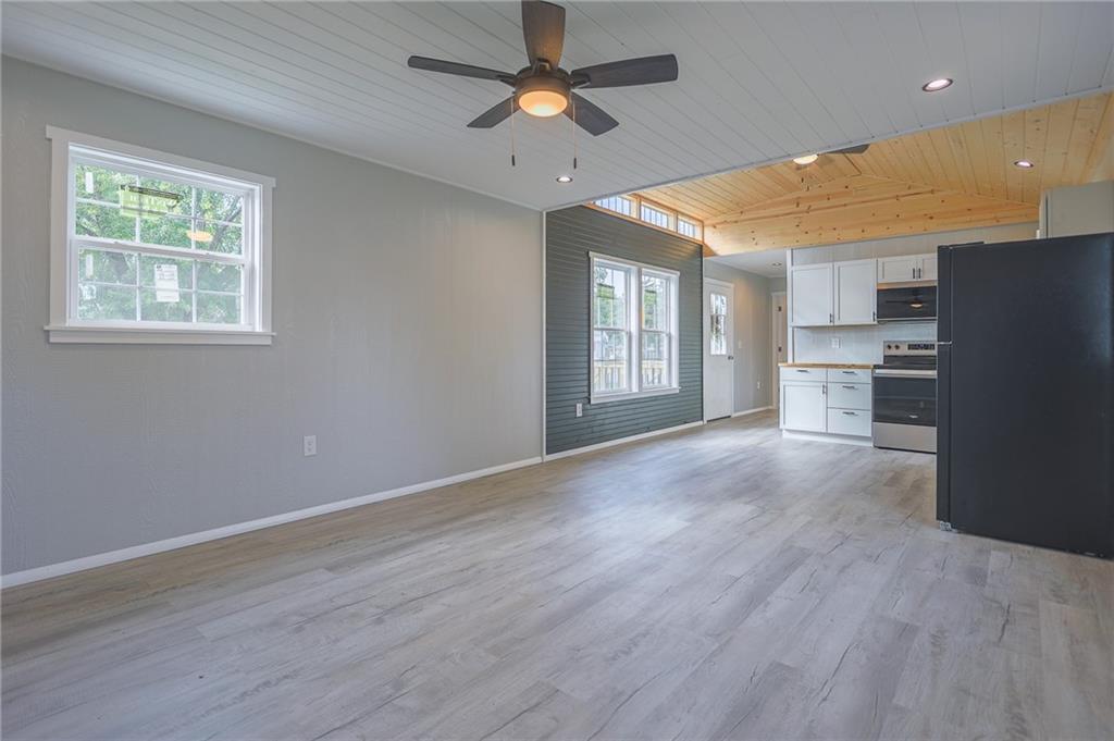 Gorgeous new construction! You'll be pleasantly surprised with the spacious feel. The kitchen boasts lots of natural light with transom windows and a vaulted ceiling. It flows nicely into the living room with an open concept to maximize the space. Built-in storage in the bathroom and a stackable washer and dryer lend to the functionality of this home. Entertain outdoors on the front or rear deck or relax on the patio. You'll want to see this one in person!