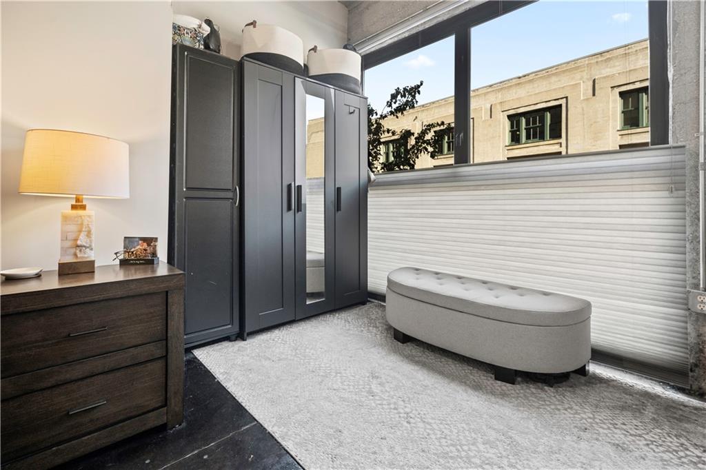 Live at the center of it all in The Liberty Lofts, perfectly positioned in Kansas City’s Crossroads Arts District! This spacious 2-bedroom, 1-bath loft offers a blend of industrial style and modern updates, just steps from the city's best dining, art, and nightlife. Nearly 1,300 sq ft of open living space is anchored by polished concrete floors, soaring ceilings, and oversized windows that flood the main living area with natural light. The recently refreshed kitchen features granite countertops, ample cabinetry, and a large island that flows seamlessly into the expansive living space—ideal for entertaining or everyday living. Both bedrooms offer generous closet space and versatile layouts. A centrally located bathroom includes in-unit laundry for ultimate convenience. Pet-friendly too. This unit includes one designated garage parking space, a dedicated storage unit, and access to additional covered parking available—plenty of parking for guests or a second car. Building amenities include a remodeled fitness center and a stunning rooftop terrace with panoramic views of downtown KC. It’s the perfect spot to catch fireworks at the Liberty Memorial, watch another Superbowl parade, or soak in the city skyline any day of the week. Just steps from KC’s top restaurants, bars, art galleries, Union Station, and the Streetcar line, this loft puts you in the center of the city's creative and culinary scene. Modern comfort, historic charm, and a location that truly delivers—welcome to The Liberty.