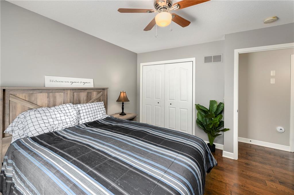 Plenty of time to move in before your first holiday feast lights up this much-sought-after Carriage Point gem, nestled on a peaceful cul-de-sac. 4 true bedrooms & 3 full baths! This beautiful front-to-back floor plan is expansive with its vaulted ceilings and staggered levels that allow natural light to beam in and kiss every inch of this updated home with fresh vitamin D. Also, a gas log fireplace in the living room adds instant warmth. Newer hand-scraped hardwood floors gleam throughout, tying in with the newer paint, sleek modern lighting, updated plumbing fixtures, and newer vinyl windows with included window treatments that elevate every room. The kitchen steals the show next, with bright white quartz countertops, backsplash, stainless steel appliances (all staying put), and a pantry loaded with pull-out shelving. That glass-top range? Effortless cleanup for your home's chef. Adjacent, the dining room flows onto the painted deck, w/ stairs descending to the patio. Spacious primary is a private escape, boasting a custom closet system in XL walk-in and an en-suite bath w/ double vanity, tiled floors, separate shower, and jetted tub—perfect for sinking into spa-like bliss on those unwind days. Laundry's right on the main level for everyday ease, sharing space with three more true bedrooms. The true fourth bedroom is an XL standout, doubling as prime flex space—a home office, playroom, or man cave—with direct walkout to the covered patio (sheltered by the painted deck overhead), complete with a custom bed-sized swing and string lights for outdoor ambiance & magic. From there, the lush, green yard unfolds, wrapped in a privacy fence for seclusion. The deep three-car garage stores vehicles and extra gear, while the sub-basement offers bonus square footage for storage, a future workout haven, or more flex uses. And location? Prime proximity to Lee's Summit schools, swift highway ramps, and a bounty of shopping & dining hotspots.