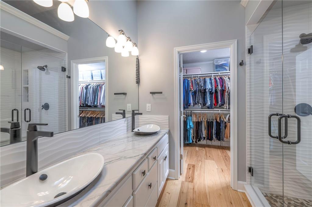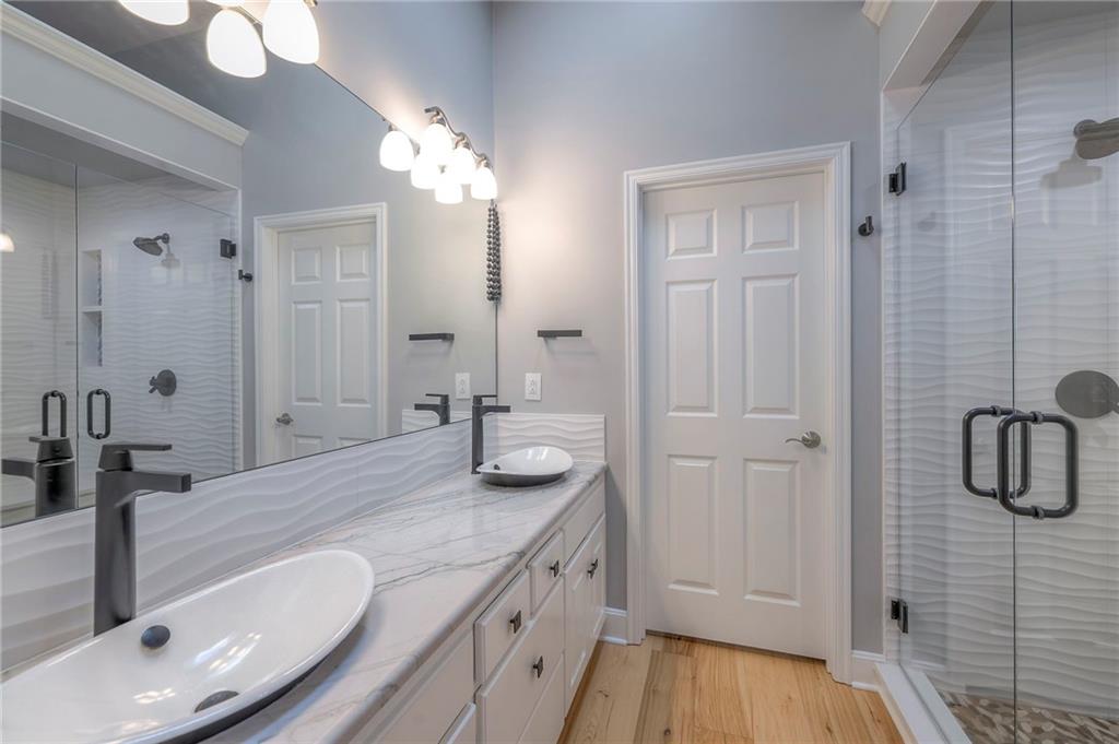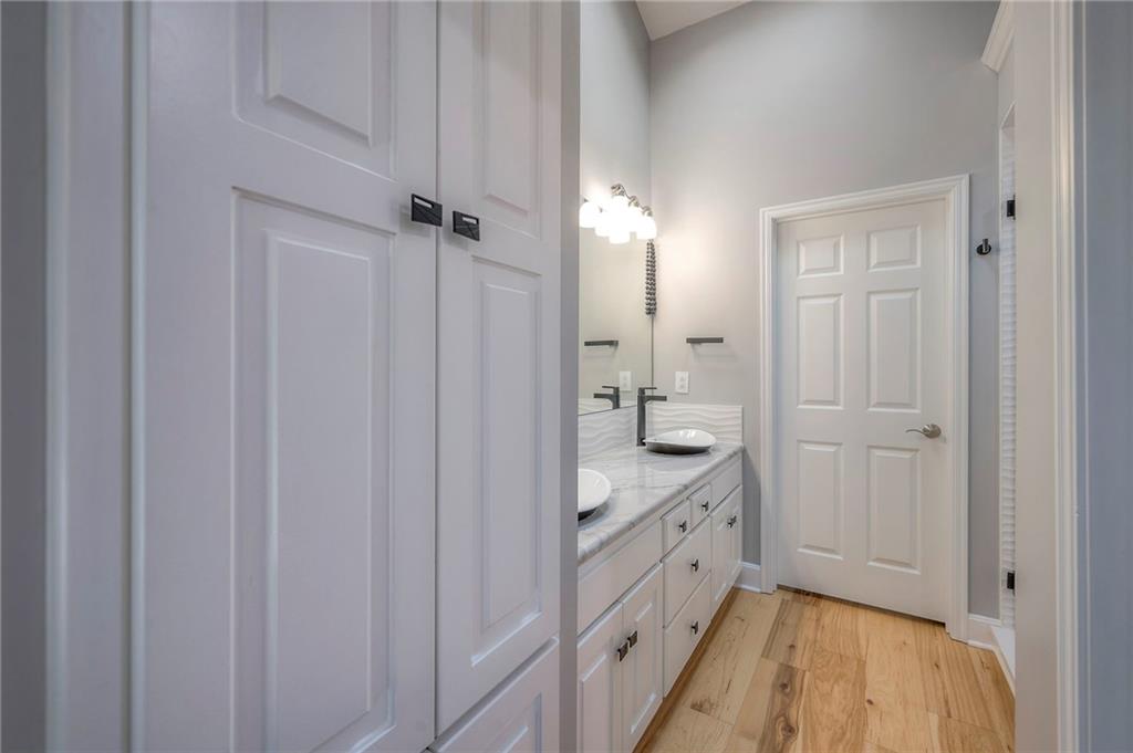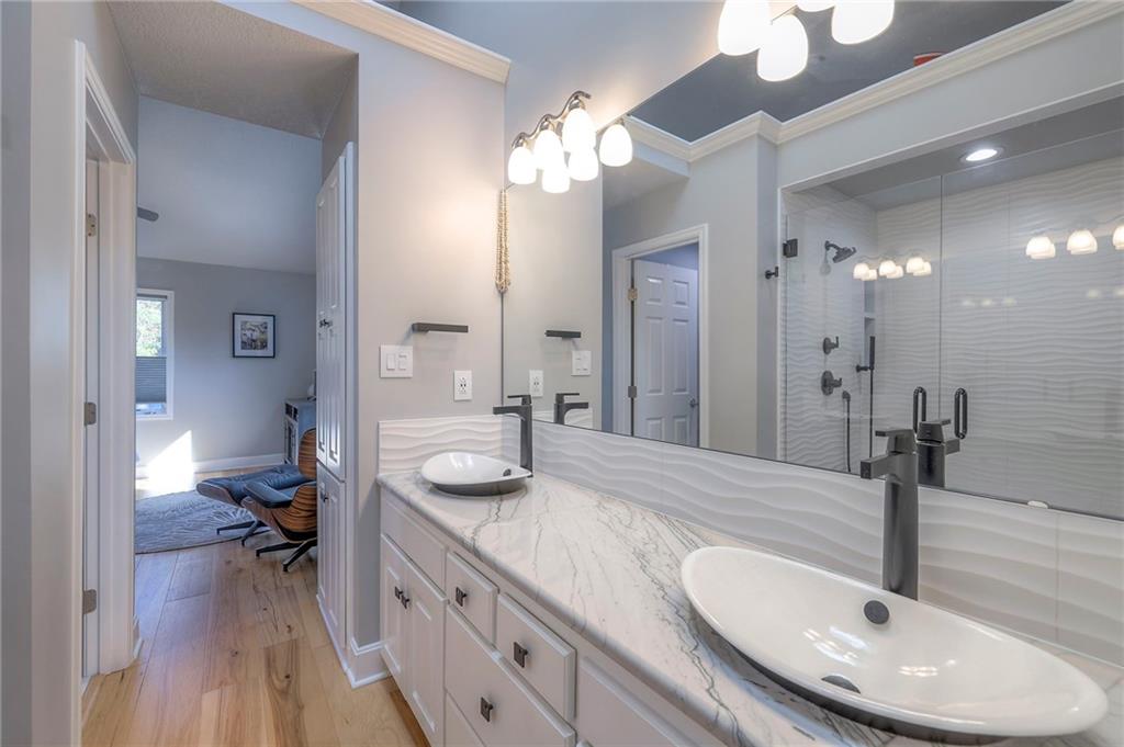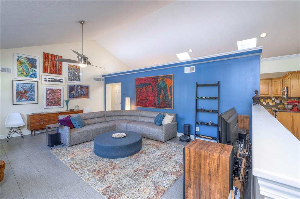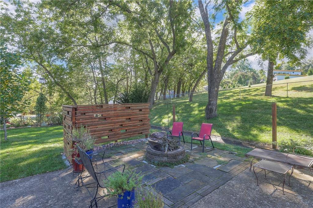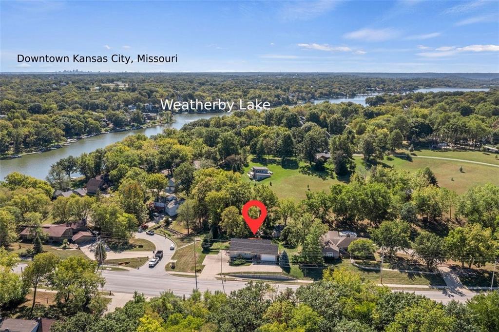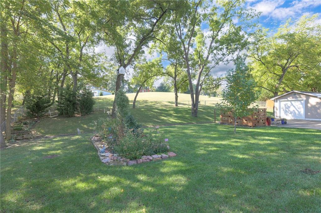 Welcome to this beautifully updated 3-bedroom, 2.5-bath reverse 1.5-story home sitting on a scenic .65-acre lot! Step inside a light-filled living room featuring vaulted ceilings, porcelain tile floors, a ceiling fan, and an abundance of natural light. The updated kitchen is a true highlight, featuring granite countertops, stainless steel appliances, a stylish backsplash, and a spacious eat-in dining area—perfect for daily living or entertaining. The primary suite is your personal retreat, offering a large walk-in closet and a fully updated en-suite bathroom designed for relaxation. Convenient main-level living flows seamlessly into the finished walkout lower level, complete with a large rec room, two additional bedrooms, and a full bath. French doors open to a patio with a hot tub overlooking the private, fenced backyard with a firepit—ideal for cozy fall evenings. Outside, you’ll find even more to love. The backyard features a versatile finished outbuilding, for use as a bonus entertaining space, gym, or office, and half for all your storage or yard equipment needs. Mature trees and a park-like setting provide the perfect blend of privacy and outdoor enjoyment. With recent updates, including newer windows, this home is truly move-in ready. Add in its unbeatable location—just minutes from shops, restaurants, highway access, and KCI airport—and you’ve got a home that checks every box.