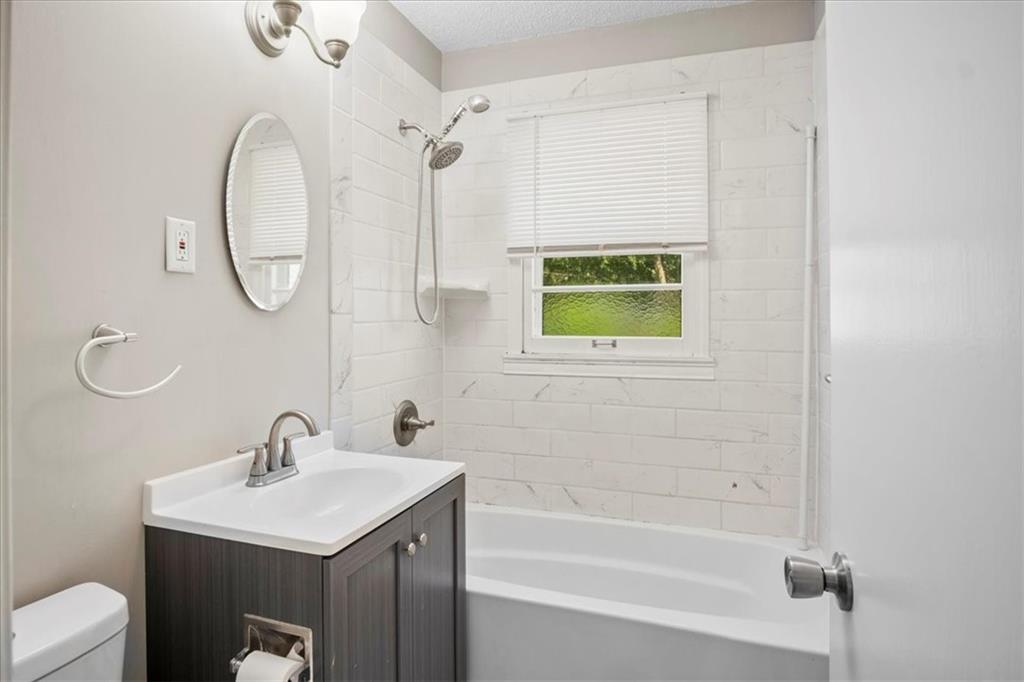 Carpet free ranch includes beautiful wood floors and updated tiled baths. The fenced backyard is spacious enough to add a pool & storage shed. Bonus room in the basement w/adjoining half bath. Easy access to highways and only 1/3 mile away from Searcy Creek Parkway Trail head. All kitchen appliances included. Google Fiber installed. Part of the garage was used to finish the dining area garage measures approx 14 x 13 All Square Footage needs to be verified by buyer and buyers agent.