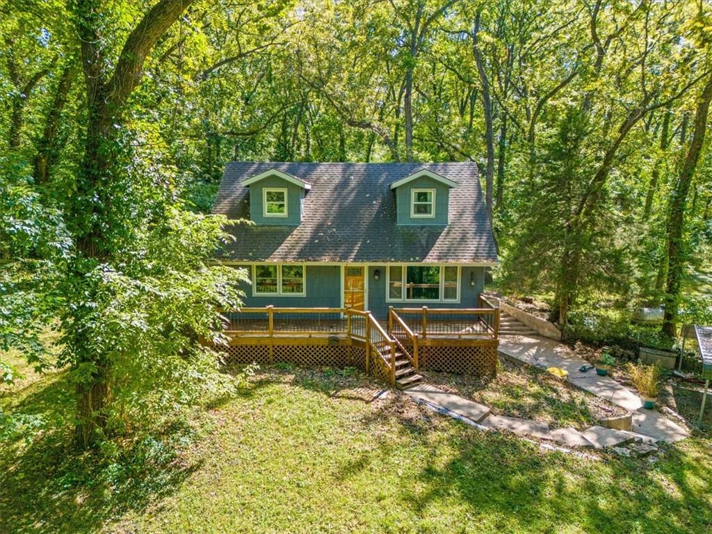 This property is a true hidden gem in Platte County, Missouri. It's not everyday that a home sitting on 3.44 acres in unincorporated Platte county becomes available. This 4 bedroom 2 bath home has endless possibilities for its new owners. With a little love and your vision, this property could easily be your dream estate. The home currently boasts a nature lovers paradise. Sit on the front porch and enjoy the expansive property complete with walnut trees and plenty of privacy. Inside the home, you'll find wood floors throughout most areas and newer doors and windows. The main level has a cozy kitchen with updated appliances and an eat-in kitchen area. The living room offers a large picture window with a wonderful view of the front of the property and leads to the two main floor bedrooms and a full bathroom. The second floor adds two additional bedrooms and a shared half-bathroom. The lower level includes an entrance from the driveway, a finished living space with a closet and a large unfinished area that houses the utilities and extra storage. You do not want to miss the opportunity to see this unicorn of a property. Home does share a driveway with the house up the hill. The driveway is on this property.