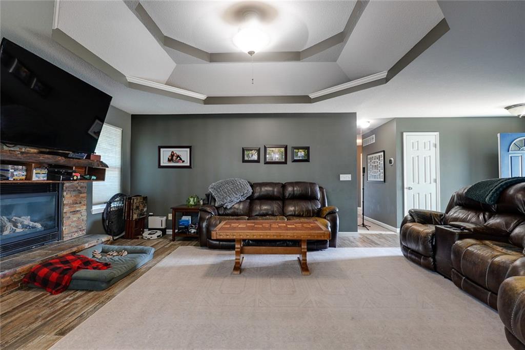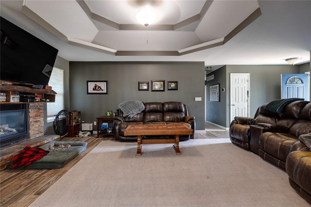 MOTIVATED Sellers offering this Beautifully Updated 5-Bedroom, 3- Bathroom Home with Country road vibe and Modern Comforts. Tucked away on quiet country back roads yet just minutes from town, this fully updated 5-bedroom, 3-bathroom home offers the perfect blend of seclusion and convenience. The open floor plan connects a spacious living room, large dining area, and stunning kitchen with a Large Island to accent it all.—ideal for entertaining or family gatherings. The main floor features three well sized bedrooms including a beautiful primary suite with raised ceilings, updated and modern master bathroom with sizeable His/Hers closet space and a Double vanity.All while the finished walk-out lower level offers two additional spacious bedrooms, a second living room area for any sized gathering to enjoy the ample space including your own personal theatre area,a third full bathroom, plus abundant storage space. Step outside to a large back deck overlooking the fully fenced yard surrounded by a privacy fence. The open lot next door enhances the peaceful setting, giving you extra breathing room. Located in a desirable neighborhood with No HOA and part of the highly sought-after Grain Valley School District, this home combines rural charm with modern convenience.