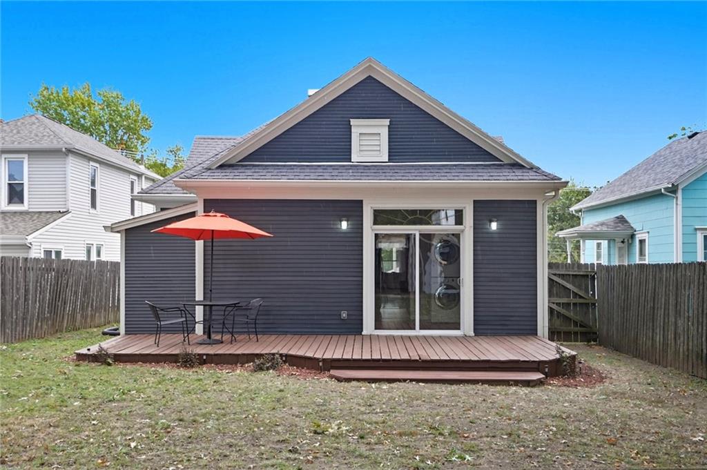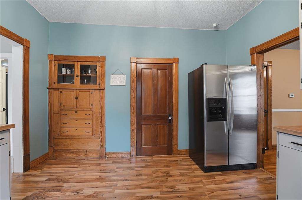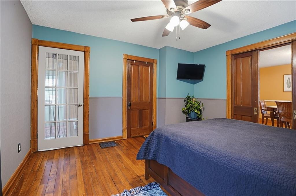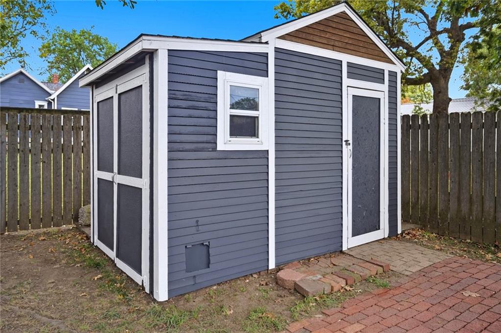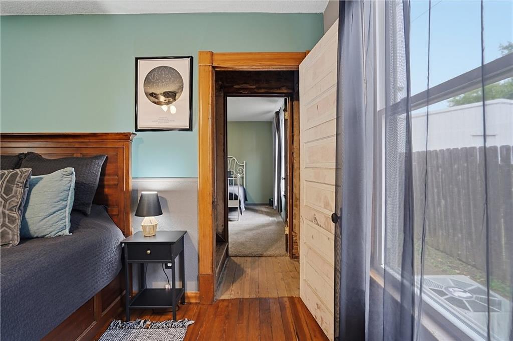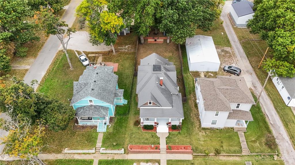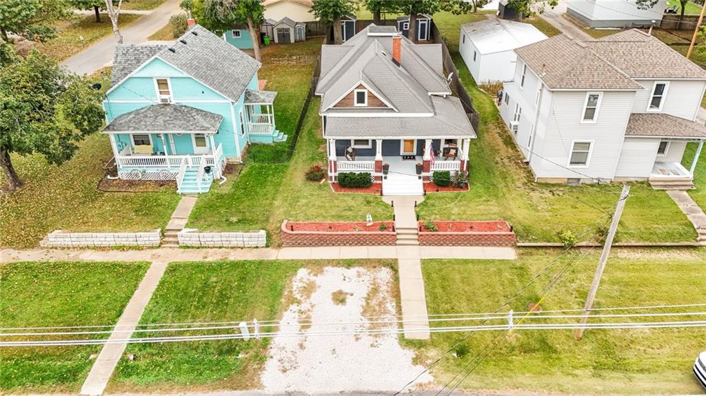 BACK ON MARKET NO FAULT TO SELLER, BUYER UNABLE TO PERFORM. WHAT A COMPLETE CHARMER! This 2 bed, 1 bath home is filled with warmth, character, beauty, a perfect blend of new and old and truly great spaces. The dreamy front porch greets you and asks you to sit a spell. The moment you walk into the entry you feel invited into this lovely home. The room sizes are spacious and effortlessly flow into each other. The dining room boasts of the beautiful hardwood floors and very spacious area that allows a large table for many gatherings. Plenty of storage in the kitchen with a stunning built in wood cabinet we believe to be the age of the home. The vast and large attic could be used for substantial storage or you could renovate it and have an incredible area and added square footage. The Cellar allows for more storage and safety from Kansas weather. Bonus room off of primary could be used for an office, workout room or library, etc. Gorgeous original hardwood floors refinished in 2023 in the living room, dining room and primary bedroom. Primary bedroom has a walk in closet and the most elegant sliding original pocket doors. New laminate flooring in kitchen and laundry room, New carpet in 2nd bedroom, repainted the front porch all in 2025. And additionally, just re-stained the back deck and painted both sheds. Fenced backyard with two sheds. Two off street parking spaces out front. This is your opportunity to live in charming Baldwin with its wonderful downtown area with restaurants, ice cream shop and a coffee shops, and the beloved Maple Leaf Festival. I cannot say enough about this truly special home accept you should not hesitate to schedule your showing now.