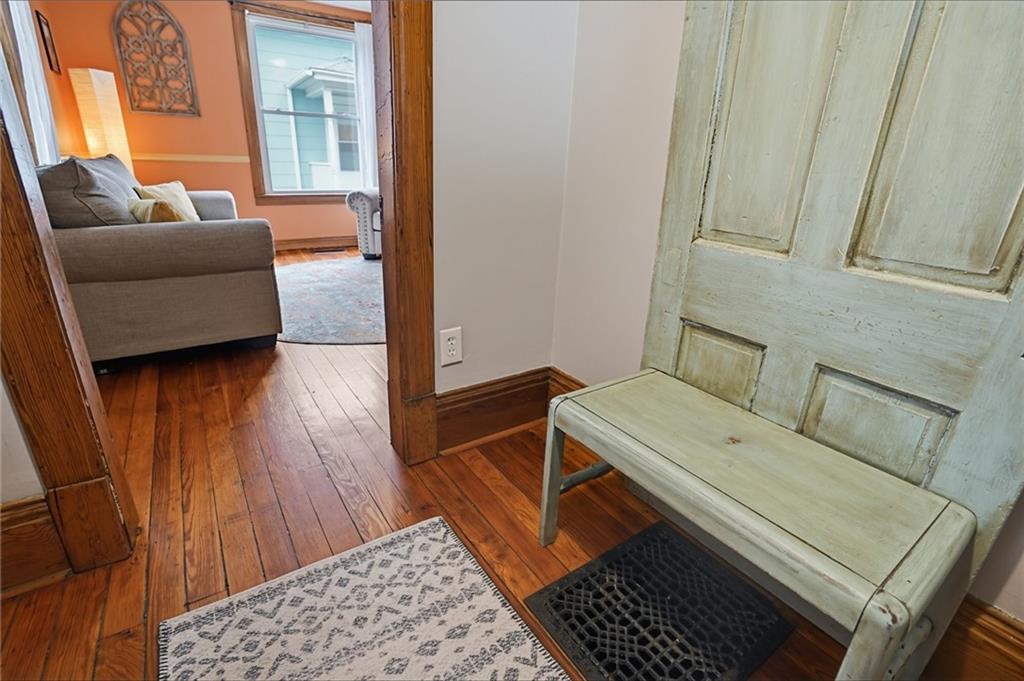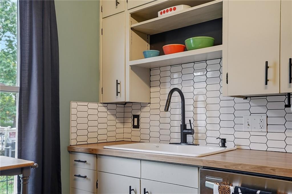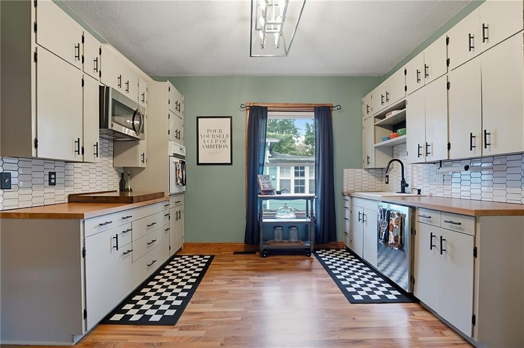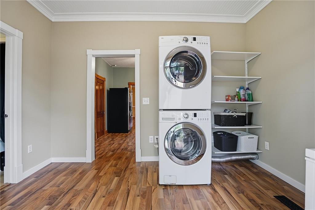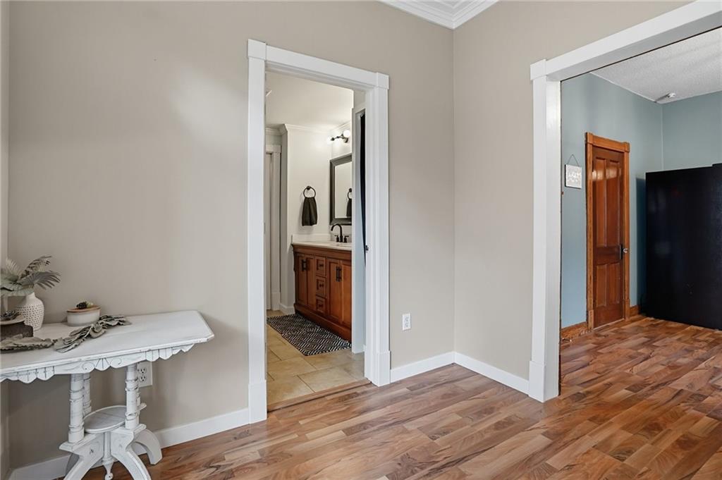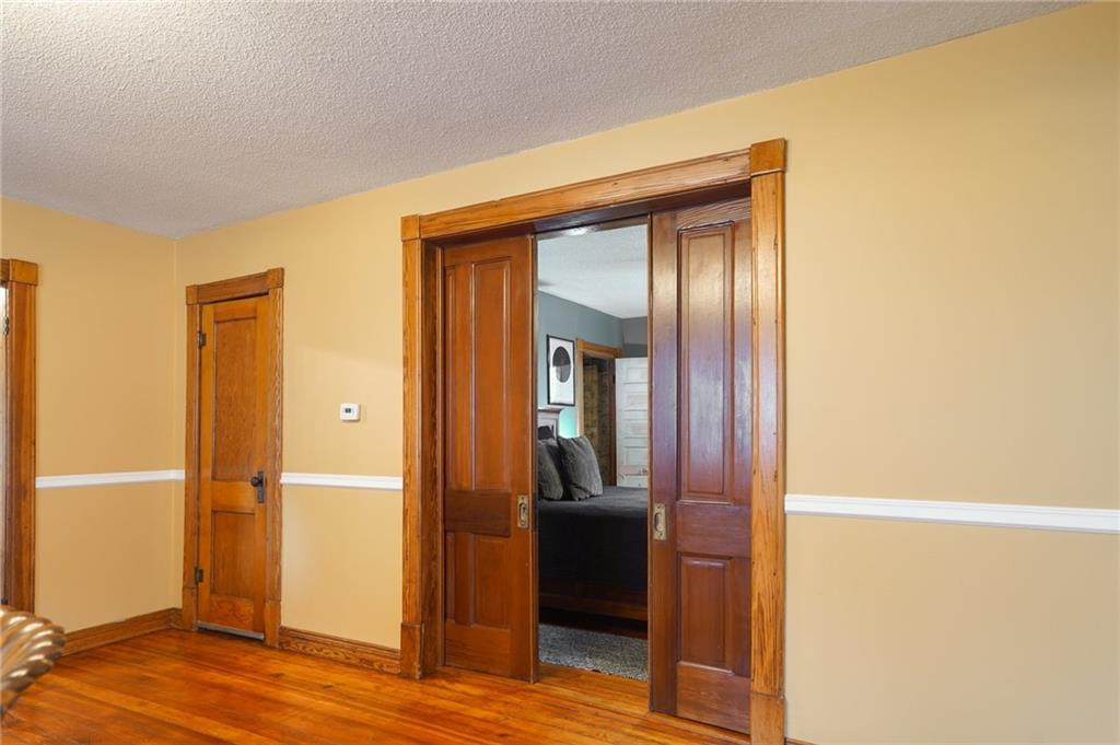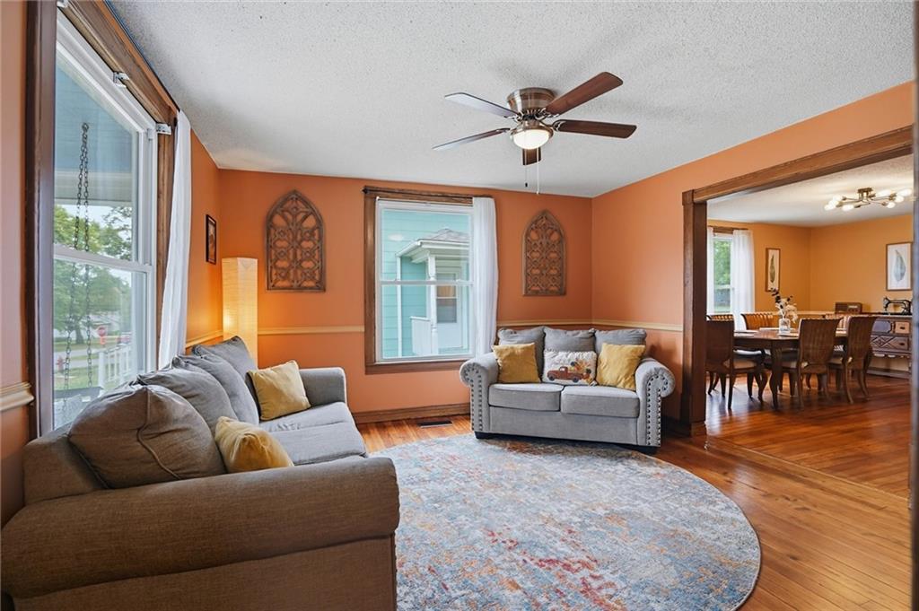 BACK ON MARKET NO FAULT TO SELLER, BUYER UNABLE TO PERFORM. WHAT A COMPLETE CHARMER! This 2 bed, 1 bath home is filled with warmth, character, beauty, a perfect blend of new and old and truly great spaces. The dreamy front porch greets you and asks you to sit a spell. The moment you walk into the entry you feel invited into this lovely home. The room sizes are spacious and effortlessly flow into each other. The dining room boasts of the beautiful hardwood floors and very spacious area that allows a large table for many gatherings. Plenty of storage in the kitchen with a stunning built in wood cabinet we believe to be the age of the home. The vast and large attic could be used for substantial storage or you could renovate it and have an incredible area and added square footage. The Cellar allows for more storage and safety from Kansas weather. Bonus room off of primary could be used for an office, workout room or library, etc. Gorgeous original hardwood floors refinished in 2023 in the living room, dining room and primary bedroom. Primary bedroom has a walk in closet and the most elegant sliding original pocket doors. New laminate flooring in kitchen and laundry room, New carpet in 2nd bedroom, repainted the front porch all in 2025. And additionally, just re-stained the back deck and painted both sheds. Fenced backyard with two sheds. Two off street parking spaces out front. This is your opportunity to live in charming Baldwin with its wonderful downtown area with restaurants, ice cream shop and a coffee shops, and the beloved Maple Leaf Festival. I cannot say enough about this truly special home accept you should not hesitate to schedule your showing now.