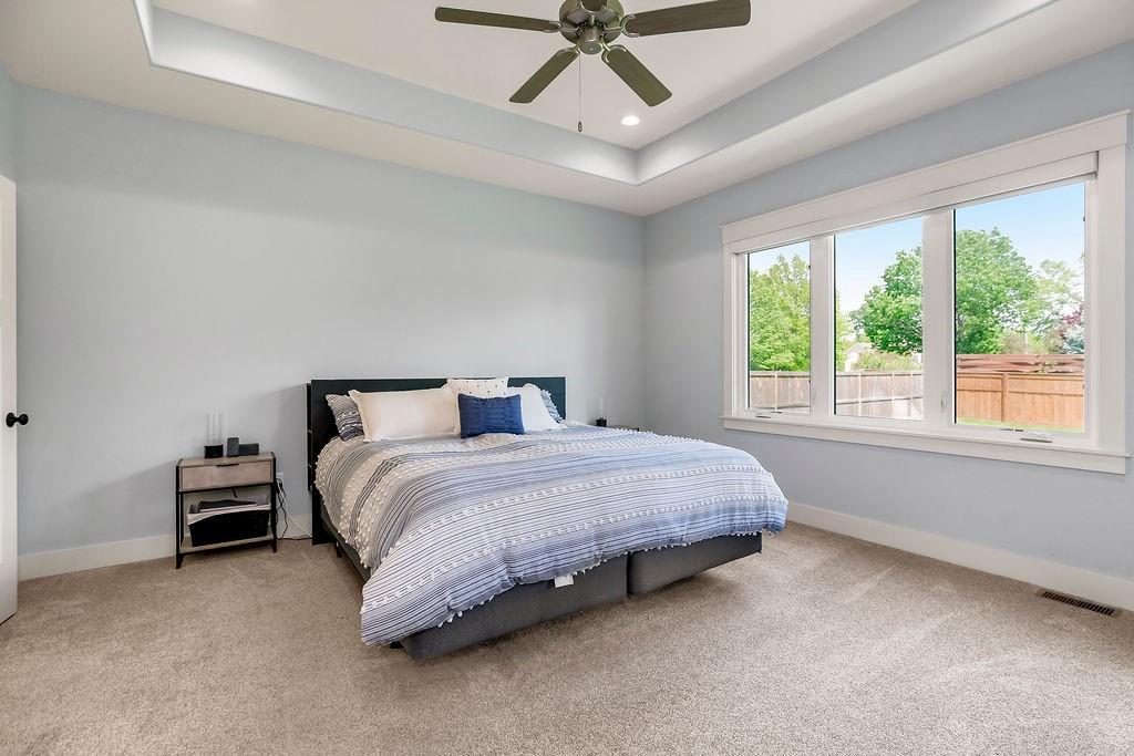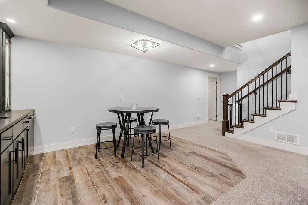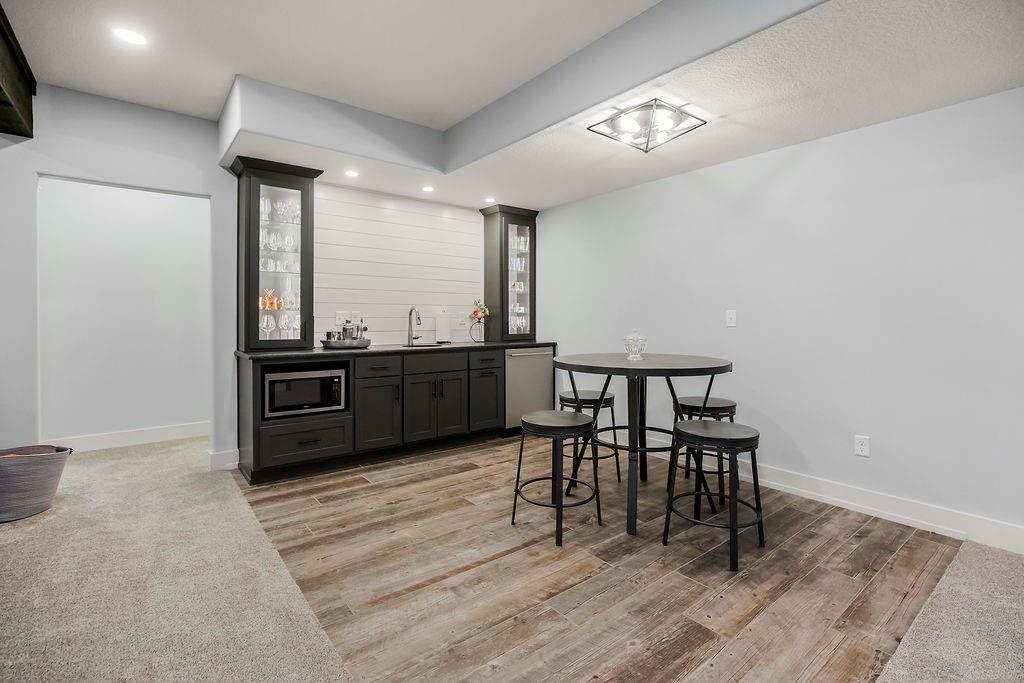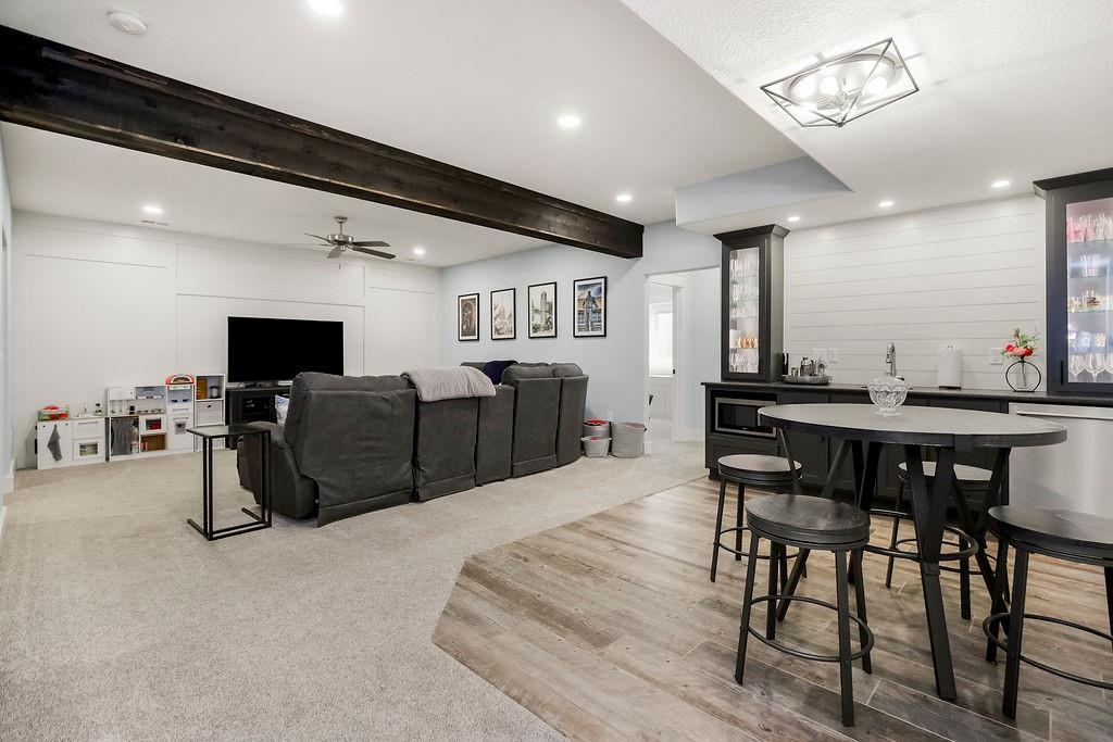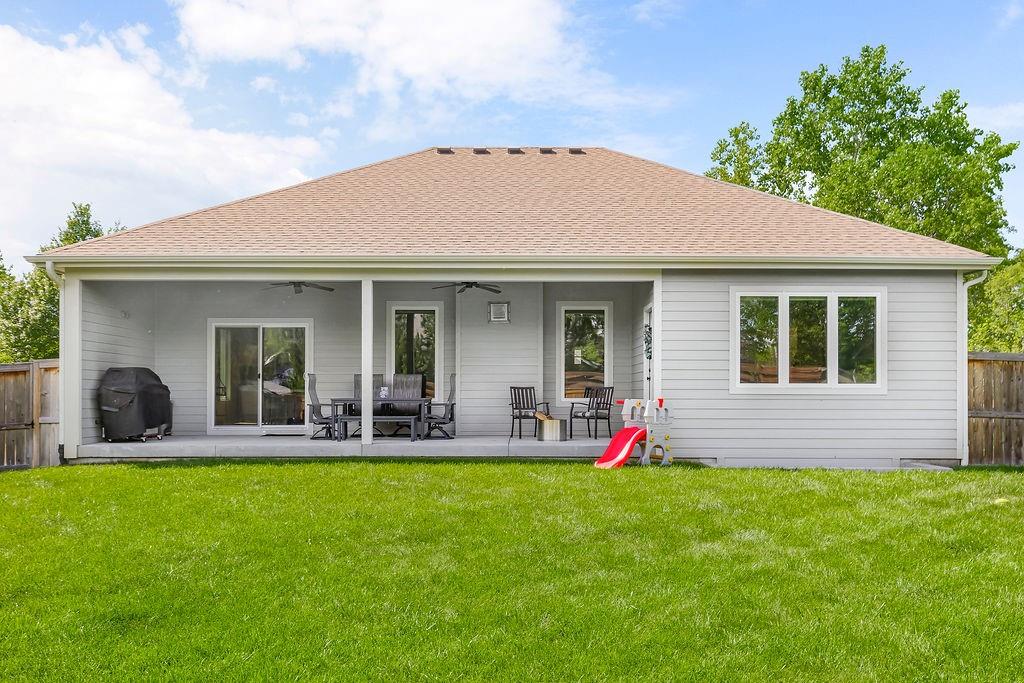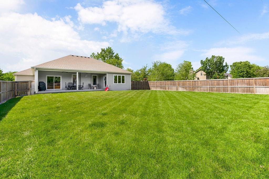 FALL in love with this newer reverse 1.5 floor plan 4 bedroom, 4 bathroom home built in 2022 with modern amenities in a well established neighborhood! You need to walk inside to appreciate the space this home offers. There was so much attention to detail which you will notice as soon as you step inside to an open floor plan highlighted by vaulted ceilings with custom wood beams. The living area seamlessly flows into the dining space and modern kitchen perfect for both entertaining and everyday living. The main level features a large primary suite with a spa-like bathroom including an oversized shower and a walk-in closet with custom shelving --complete with laundry hookups for added convenience. A second bedroom and bathroom is located on the main level. The lower level offers two additional bedrooms with spacious closets and custom shelving, two full bathrooms, a large second living area and wet bar perfect for entertaining. A bonus finished room downstairs perfect for an office is across from the lower level laundry room. Outside there is a large flat back yard already fenced with a patio and a gas hookup for your grill. Details the owners love- dimmable lighting in most living areas, automatic lighting in the pantry, automatic night lighting along the staircase, dual zoned AC/Furnace, custom blinds, and don't miss the bathroom sink faucets that pull out for easy cleaning. All appliances remain- including laundry!