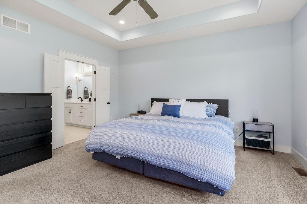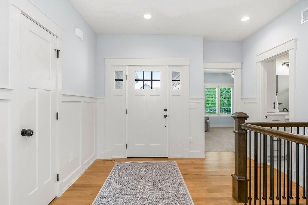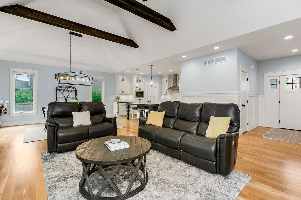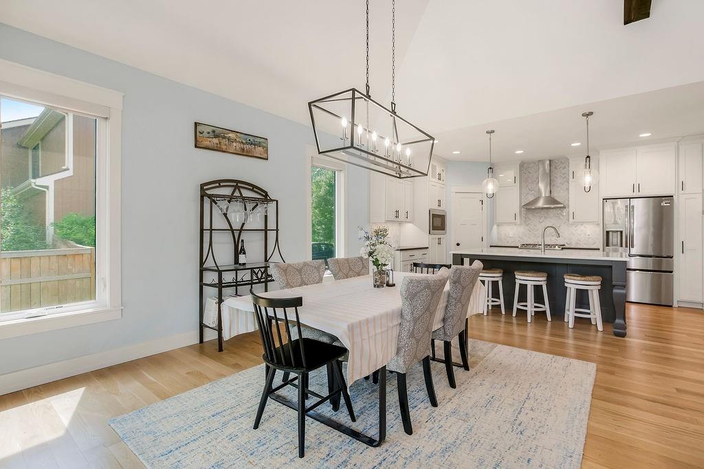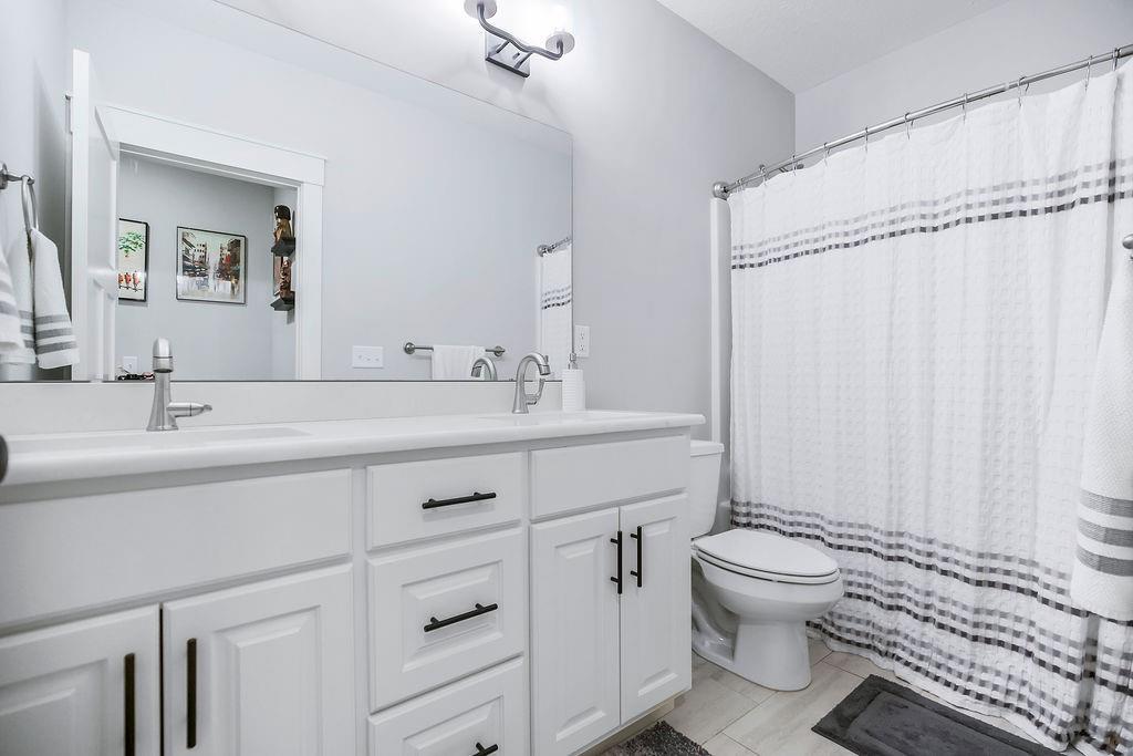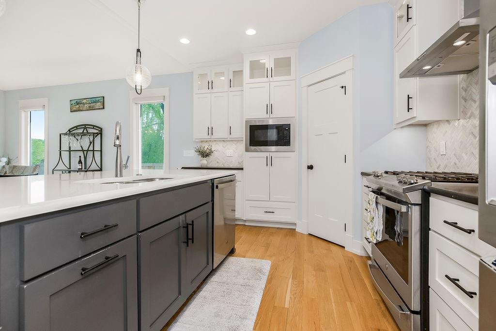 FALL in love with this newer reverse 1.5 floor plan 4 bedroom, 4 bathroom home built in 2022 with modern amenities in a well established neighborhood! You need to walk inside to appreciate the space this home offers. There was so much attention to detail which you will notice as soon as you step inside to an open floor plan highlighted by vaulted ceilings with custom wood beams. The living area seamlessly flows into the dining space and modern kitchen perfect for both entertaining and everyday living. The main level features a large primary suite with a spa-like bathroom including an oversized shower and a walk-in closet with custom shelving --complete with laundry hookups for added convenience. A second bedroom and bathroom is located on the main level. The lower level offers two additional bedrooms with spacious closets and custom shelving, two full bathrooms, a large second living area and wet bar perfect for entertaining. A bonus finished room downstairs perfect for an office is across from the lower level laundry room. Outside there is a large flat back yard already fenced with a patio and a gas hookup for your grill. Details the owners love- dimmable lighting in most living areas, automatic lighting in the pantry, automatic night lighting along the staircase, dual zoned AC/Furnace, custom blinds, and don't miss the bathroom sink faucets that pull out for easy cleaning. All appliances remain- including laundry!