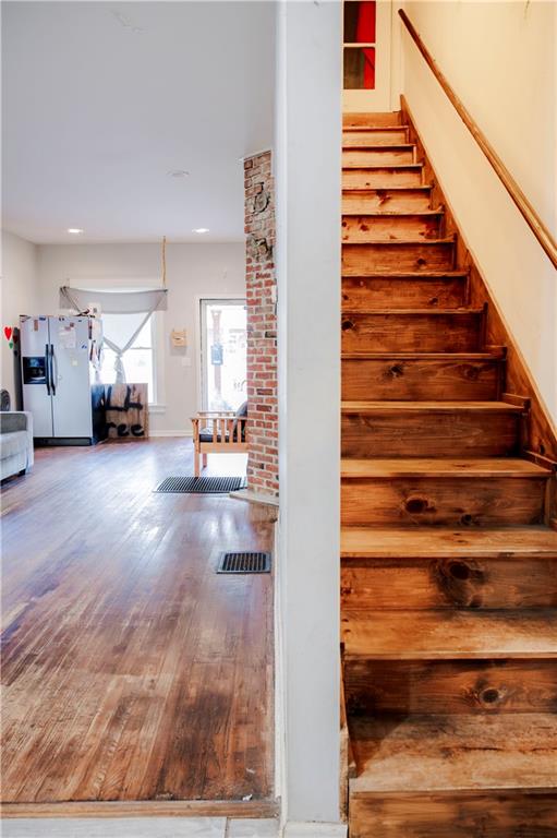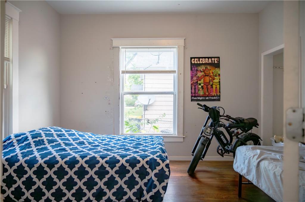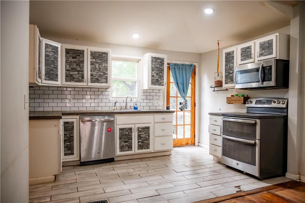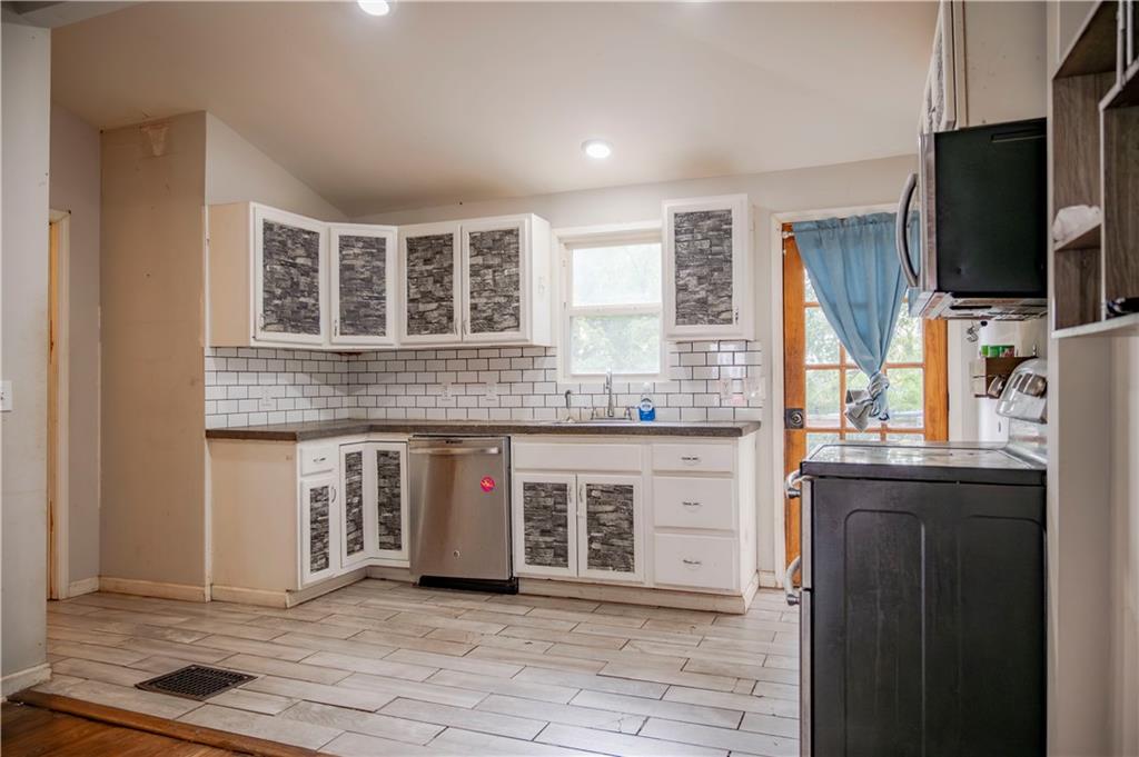 Elbow grease will get you FAR with this property! 1.5 story home with 2 bedrooms and 1 full bathroom on the main level, plus additional bedroom/full bathroom on the second floor. TALL ceilings on the main level with new windows throughout! ALL appliances stay including; fridge and stacked washer/dryer. Home just needs a touch of TLC to bring it to its absolute best! Paint, kitchen flooring, and possible back deck repairs needed. In need of a deep clean. Priced accordingly.