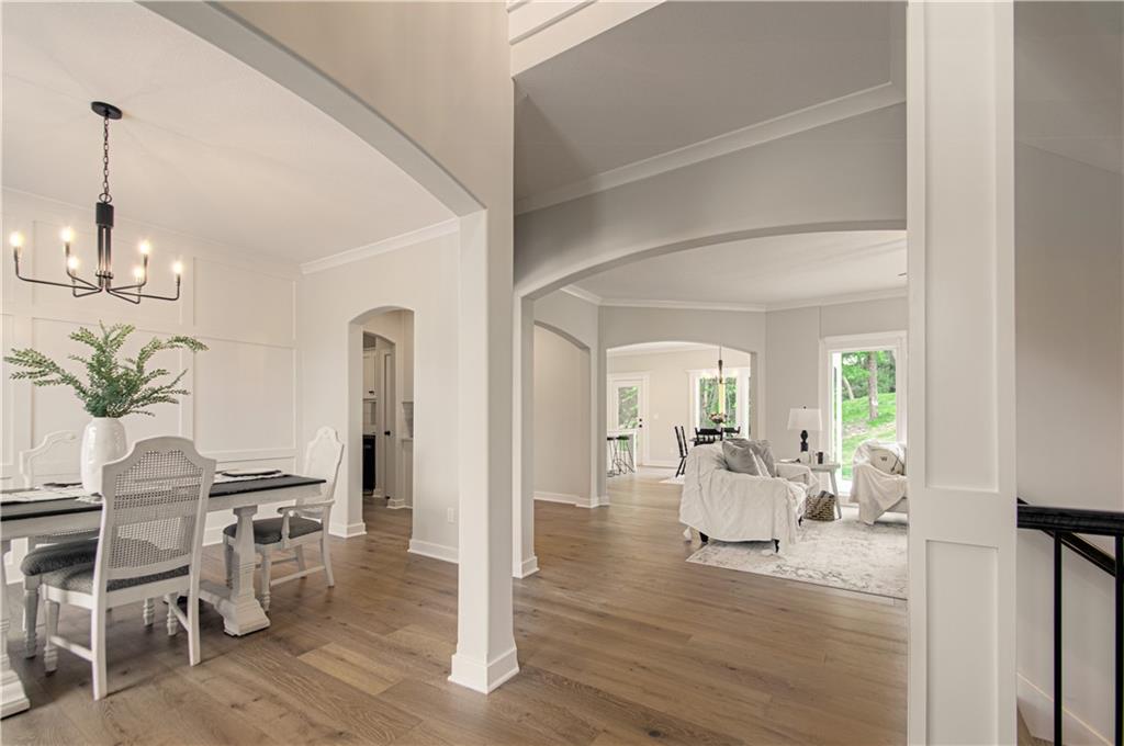 The "DAISY" is a Gorgeous move-in Ready 2-Story home with 2900 square feet backing to woods. Offering 5 Bedrooms, with the 5th Bedroom on the Main Level, and 4 Full Baths. Upgraded finishes and attention to detail this lovely home offers Rounded Arches, Custom Built Cabinets, HUGE Kitchen Island, Bonus Bar with beverage fridge, Floor to Ceiling Windows, Gourmet Kitchen, Gas Cooktop, Mudroom at Garage Entry and an Open Layout which makes it great for entertaining. The Second Level is just as impressive and features a Private and Expansive Primary Suite and Walk-in Closet that has access to the Laundry Room. The Primary Bath is luxurious with an oversized Tub and Walk-in Shower with tile walls. There are 3 more bedrooms and 2 more baths on this level. Beautiful Staircase overlooks the Front Entry. Huge walk-out basement that could be finished to fit the buyers needs.