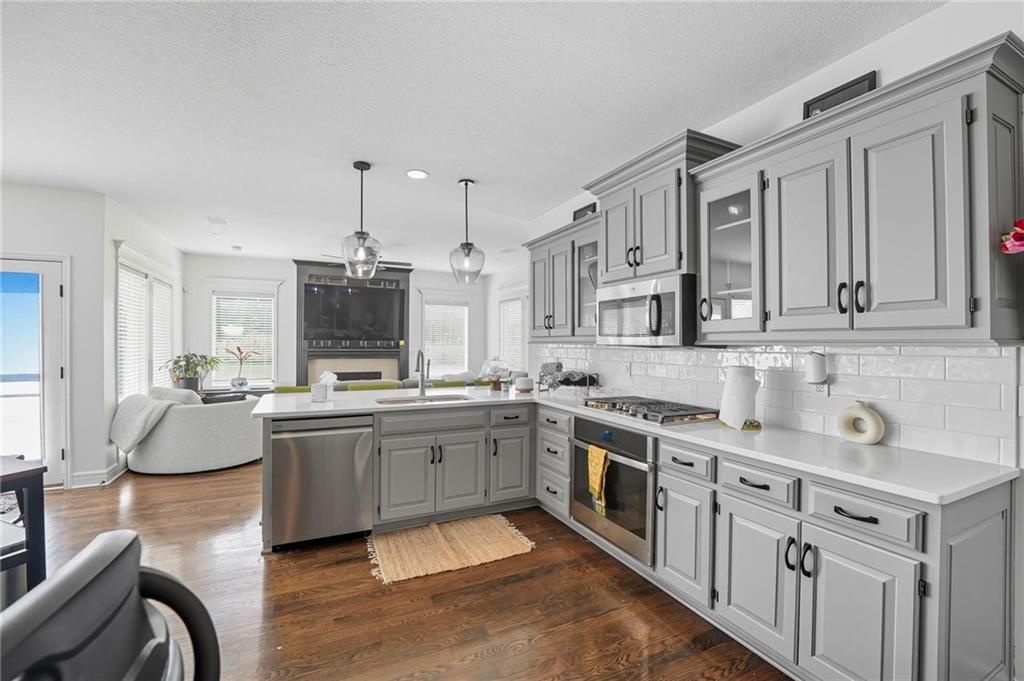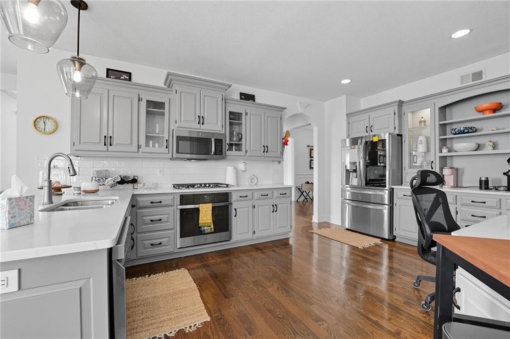 Welcome to your dream home in the prestigious Staley Farms community! Nestled at the end of a quiet cul-de-sac and backing directly to the golf course, this beautifully updated 4-bedroom, 3.1-bath home offers breathtaking views and luxury living year-round. Step inside to an open-concept main floor drenched in natural light, where rich hardwood floors and designer finishes create a warm, inviting atmosphere. At the heart of the home is the fully remodeled kitchen by Jericho, known for their high-end craftsmanship and attention to detail. Featuring sleek countertops, custom cabinetry, and top-tier appliances, this kitchen is truly built for both everyday living and stylish entertaining. Cozy up by the fireplace in the spacious living area or host gatherings that seamlessly flow from room to room. The expansive primary suite is a peaceful retreat with elegant finishes and plenty of space to unwind. The unfinished basement provides a blank canvas-ideal for creating the additional living space, home gym, or entertainment zone you’ve always wanted. With golf course living literally in your backyard, and access to all of Staley Farms’ incredible amenities, this home is a rare gem in a highly sought-after neighborhood. Don’t miss the chance to make it yours!