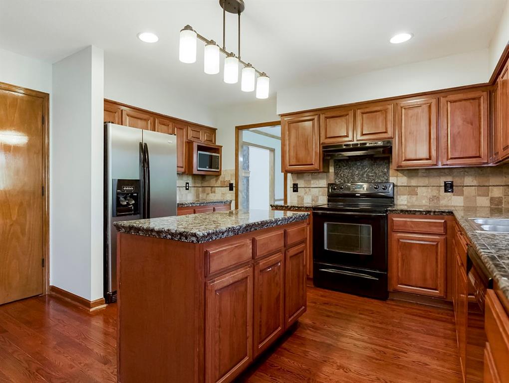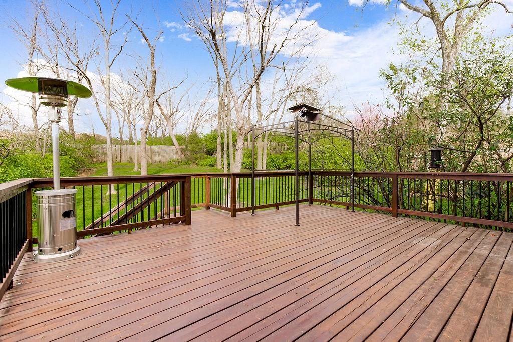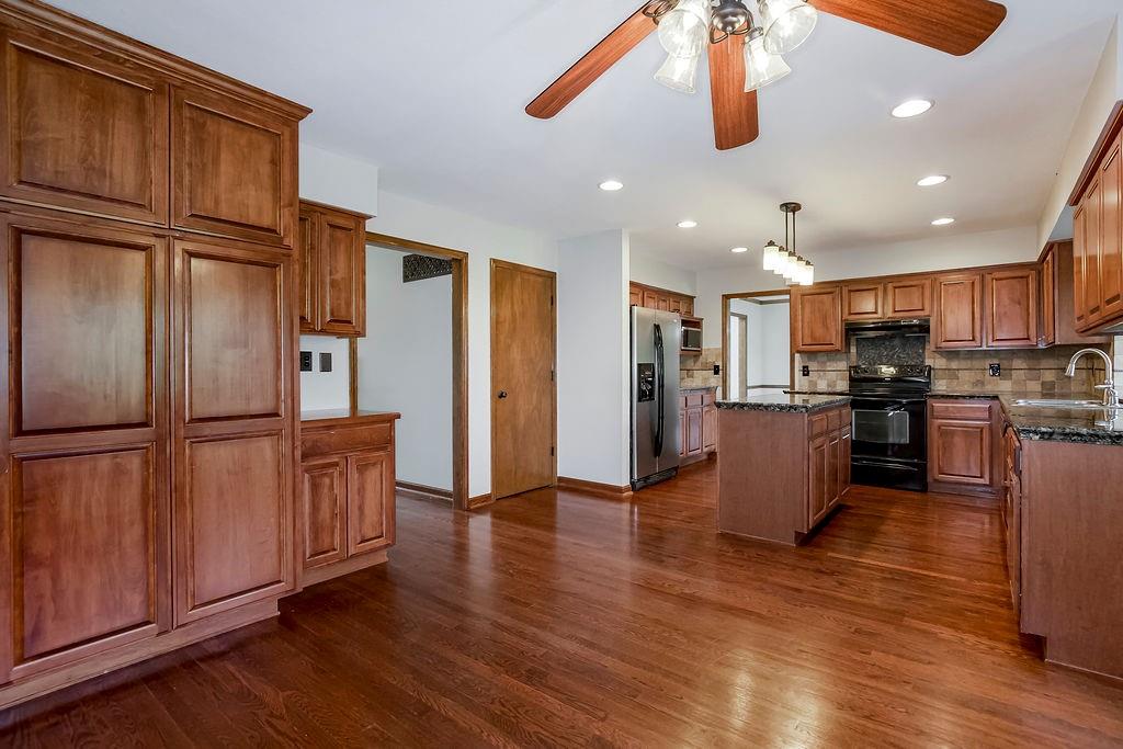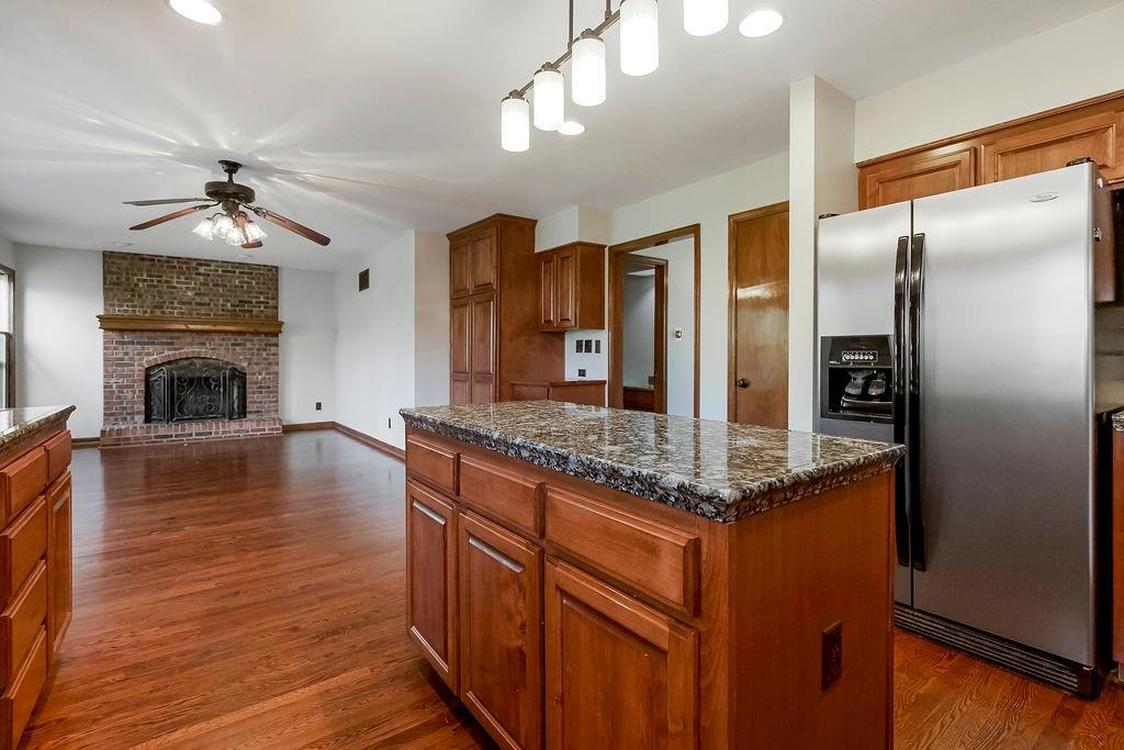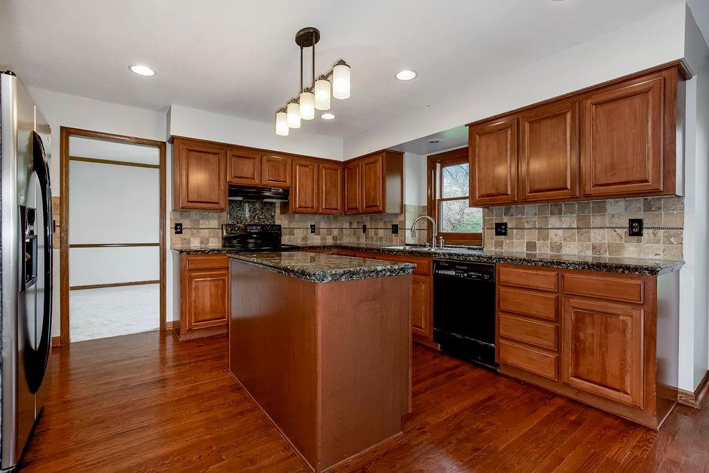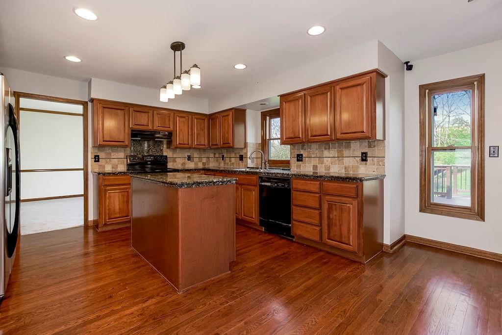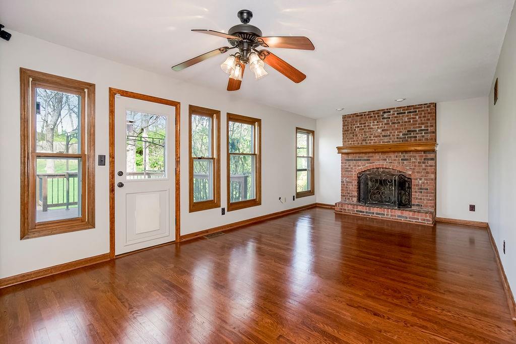 This charming two-story home welcomes you with a thoughtfully designed interior featuring hardwood floors throughout the kitchen and hearth room. The kitchen itself is beautifully appointed with upgraded granite countertops and opens into the cozy hearth room, complete with a stunning stone fireplace that makes it a perfect gathering space. On the main floor, you'll also find a formal dining room and an additional living room, each thoughtfully designed, with the living room featuring its own fireplace for added charm. Upstairs, there's a large master suite, three additional bedrooms, laundry and a full bath. The finished walkout lower level includes a rec room, another full bathroom, and a bedroom/ office / workout room. An extremely private backyard with lots of trees, deck and patio Roof, furnace and A/C all replaced in 2019. A perfect spot for outdoor relaxation. This home has it all in a great location close to schools and shopping.