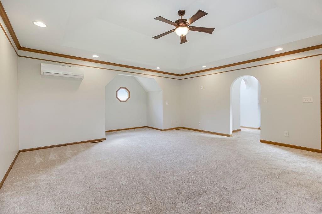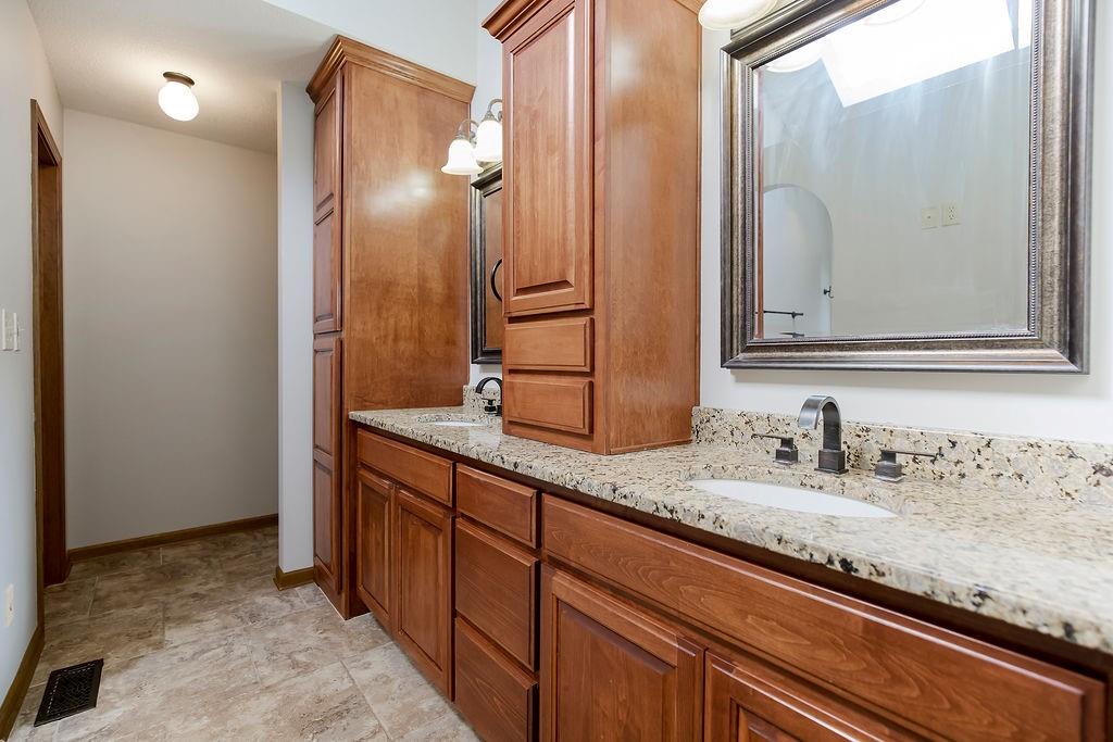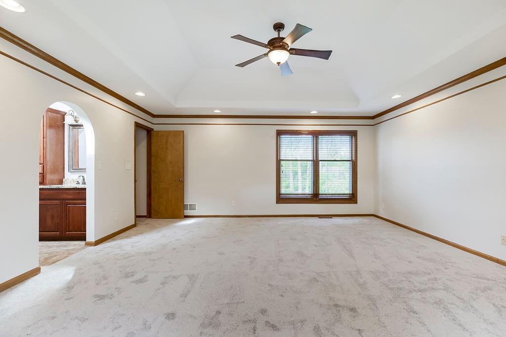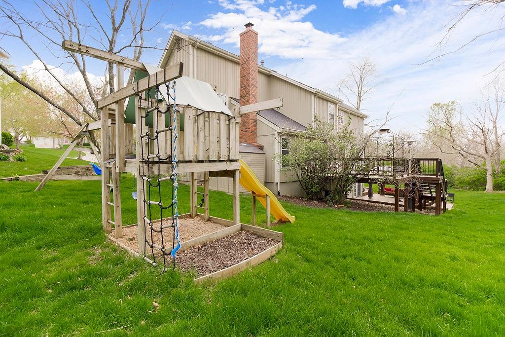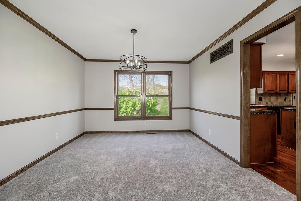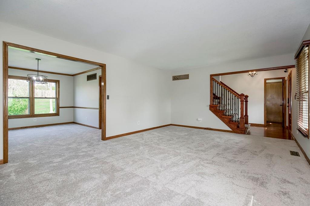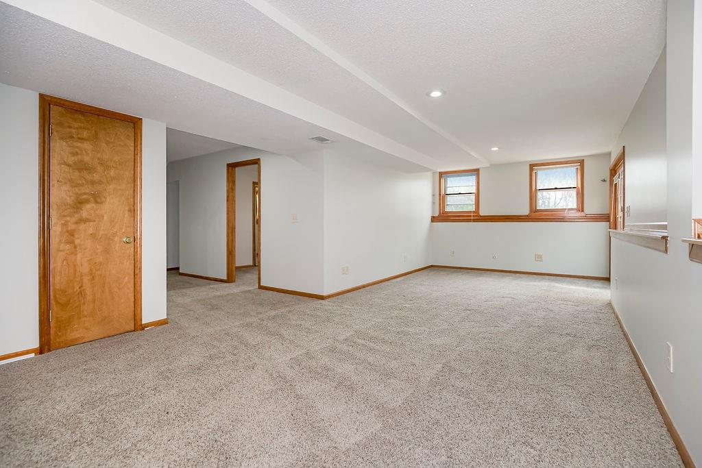This charming two-story home welcomes you with a thoughtfully designed interior featuring hardwood floors throughout the kitchen and hearth room. The kitchen itself is beautifully appointed with upgraded granite countertops and opens into the cozy hearth room, complete with a stunning stone fireplace that makes it a perfect gathering space. On the main floor, you'll also find a formal dining room and an additional living room, each thoughtfully designed, with the living room featuring its own fireplace for added charm. Upstairs, there's a large master suite, three additional bedrooms, laundry and a full bath. The finished walkout lower level includes a rec room, another full bathroom, and a bedroom/ office / workout room. An extremely private backyard with lots of trees, deck and patio Roof, furnace and A/C all replaced in 2019. A perfect spot for outdoor relaxation. This home has it all in a great location close to schools and shopping.