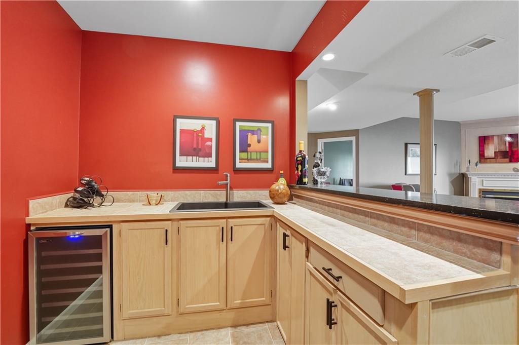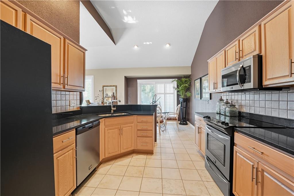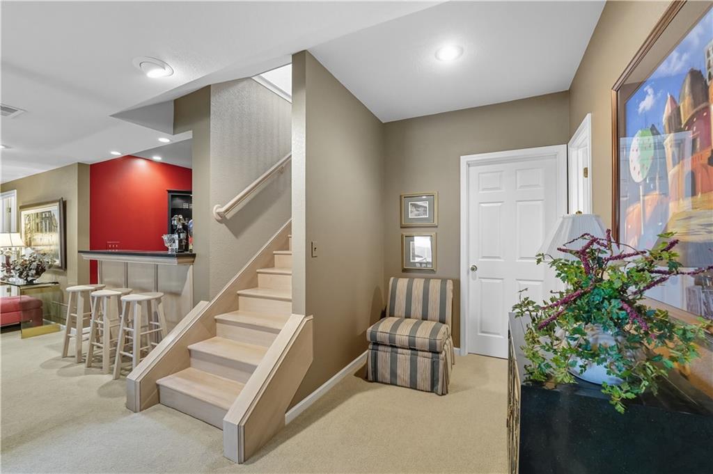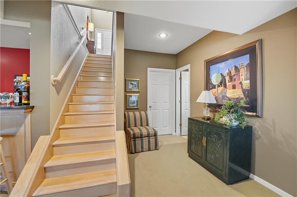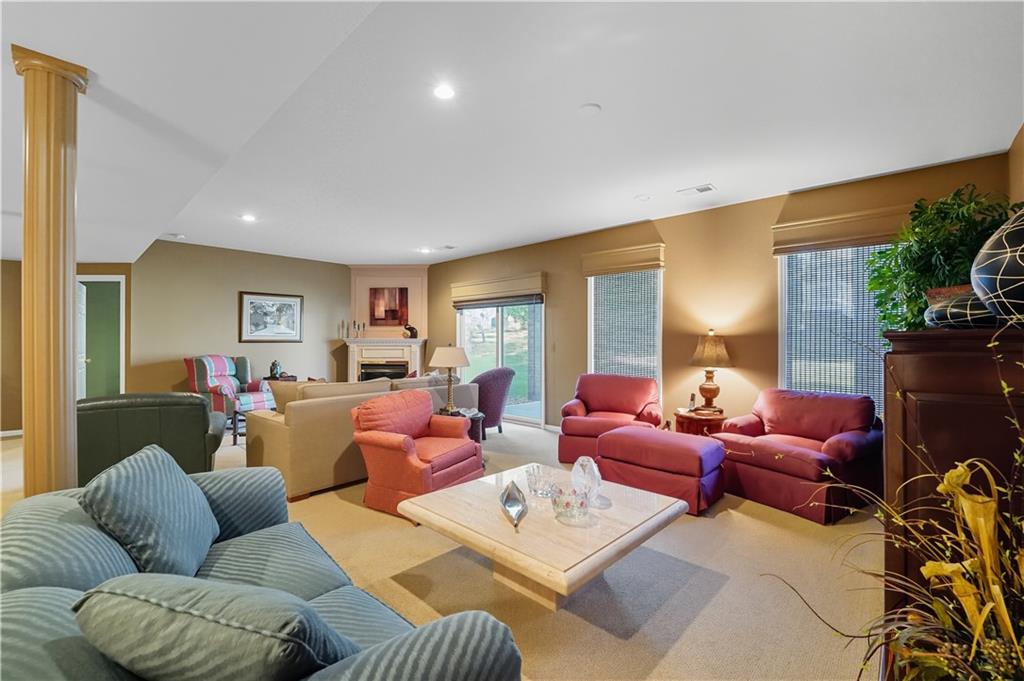 Immaculate, Move-In Ready Home in Maintenance-Provided Community – The Village at Deer Creek Welcome to this beautifully maintained home on a quiet cul-de-sac, offering the perfect blend of convenience, comfort, and style. Situated in a maintenance-provided community, you’ll enjoy hassle-free living with exterior upkeep, lawn care, and snow removal included. Ideally located just across the street from elementary and middle schools in the award-winning Blue Valley School District, this home also puts you minutes from shopping, medical facilities, restaurants, and entertainment. Inside, every detail shines. Professionally cleaned and meticulously cared for with a timeless interior. The main level features ceramic tile flooring throughout, soaring vaulted ceilings, and plantation shutters. The dining room opens to a screened-in porch—perfect for enjoying morning coffee or evening relaxation. Primary bedroom on main level with private walk-in shower. A versatile second room on the main level offers flexibility as an office, guest room, or additional bedroom. The lower level is equally impressive with a spacious living area, cozy fireplace, and full wet bar with sink—ideal for entertaining. A private bedroom with plantation shutters and adjoining bath makes a perfect guest suite. Step outside to a large covered concrete patio with peaceful views of the surrounding green space and direct access to a neighborhood walking trail. This immaculate home offers elegance, comfort, and a prime location—truly move-in ready!