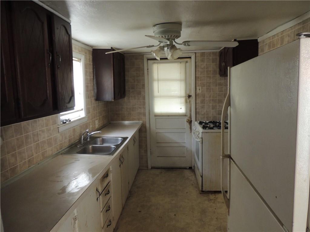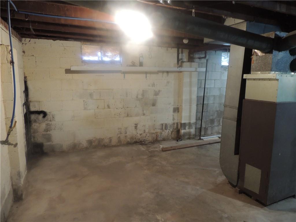 One bedroom one bath home with full basement. Laundry moved up to main level in bathroom, Needs TLC, New flooring and paint will go along way! Concrete block basement with access from back of home. Almost 600 square feet