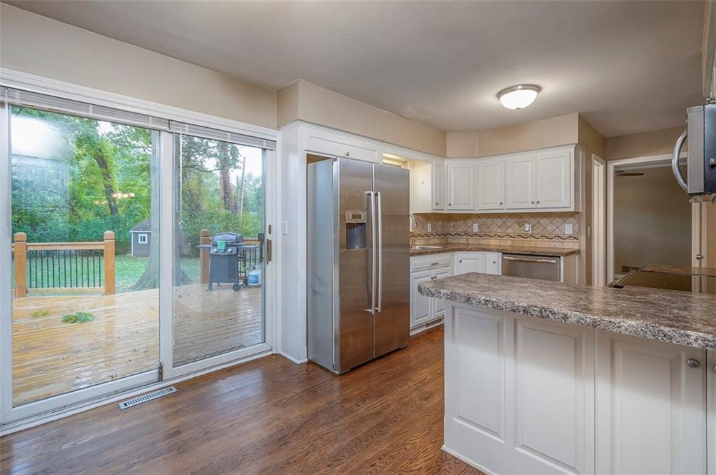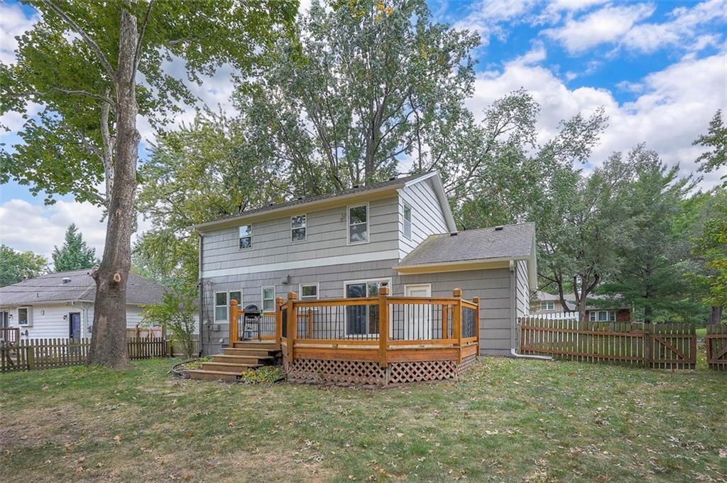 WELCOME HOME to this 3BR/2.1BA home ready for move-in! Entry leads to a large living room with FIREPLACE and wood floors running though the main level. Dining room off the kitchen is perfect for family gatherings. Eat-in kitchen has plenty of storage space, counter seating and STAINLESS STEEL appliances. Access to the DECK and backyard offers additional entertaining options. Upstairs includes a large master bedroom with ENSUITE bathroom and two secondary bedrooms with full hall bath. FINISHED basement is ready for you to customize to your family’s needs along with plenty of storage space in the unfinished area. FENCED backyard with large DECK and mature trees provides a welcoming space to spend outside with friends and family. LOCATION close to Downtown Overland Park shops, restaurants and Farmers Market, area parks and easy freeway access. Don’t miss this opportunity!!