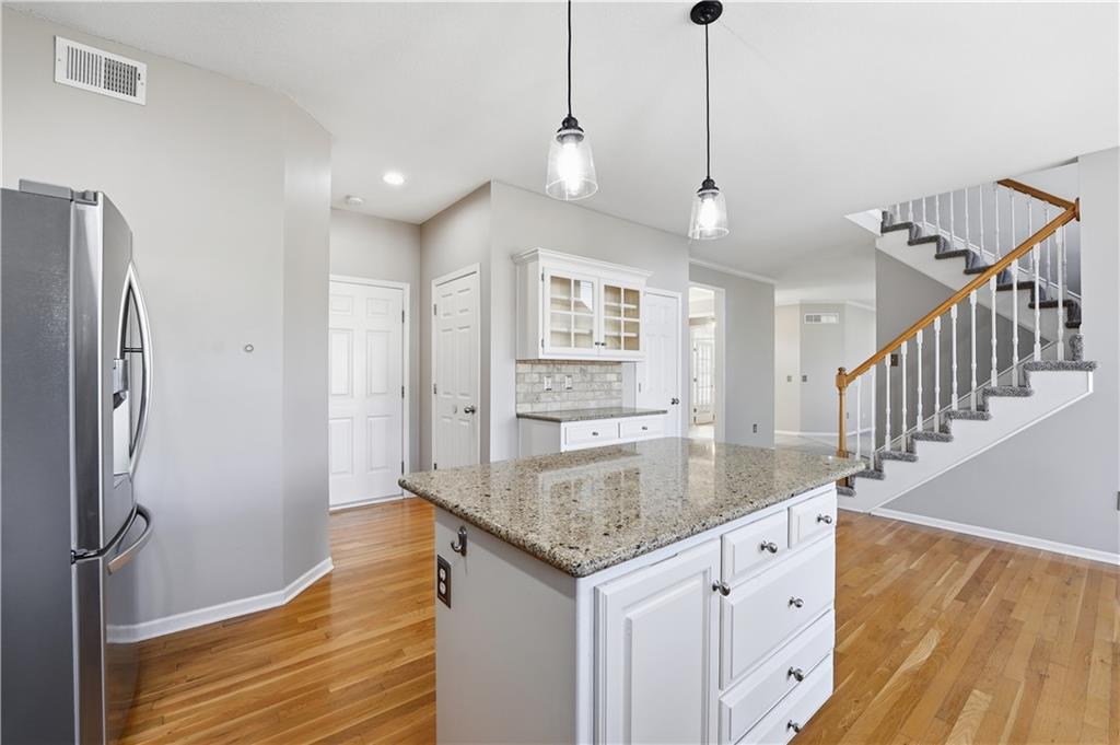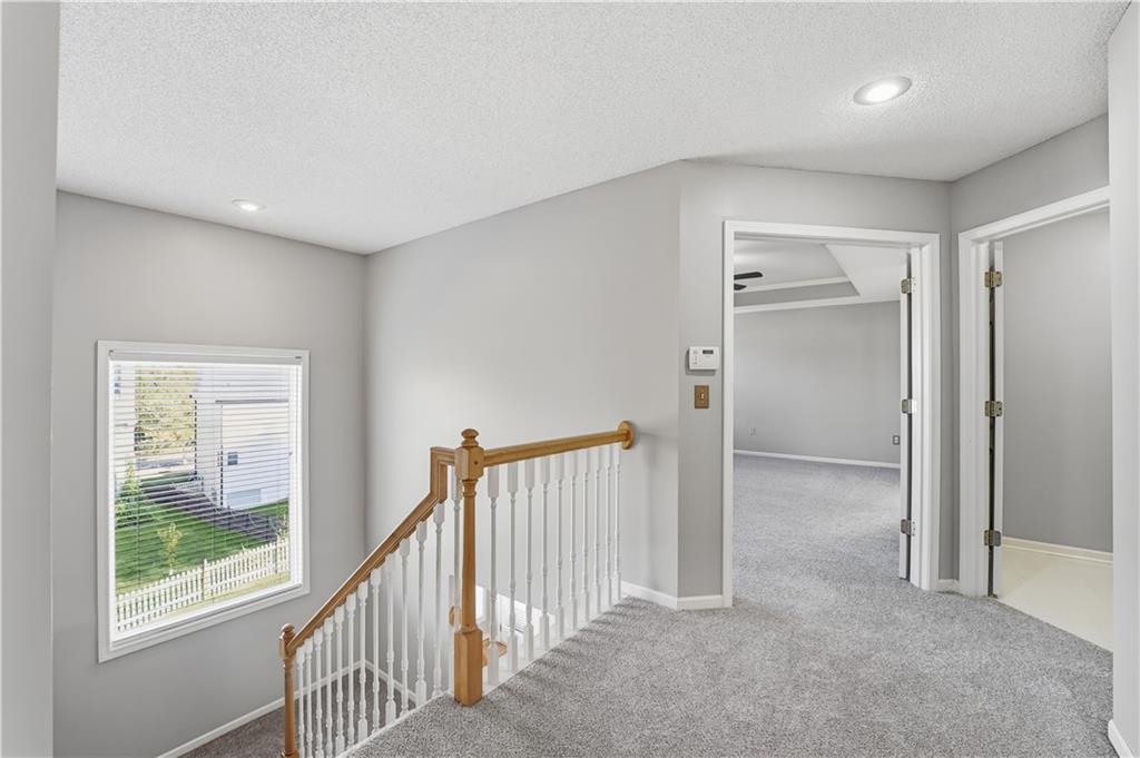 You do not want to miss this special Blue Valley home in a prime Overland Park location. The main floor features a formal dining room, a private office with French doors, a family room with a fireplace, and a gourmet eat-in kitchen featuring a center island, granite counters, and stainless steel appliances. Just off the breakfast nook is a newly renovated deck overlooking the fenced backyard. Upstairs are the large primary suite, a second bedroom with its own bathroom, and two other bedrooms that share a bathroom. The large, finished walkout basement provides a second living space for recreation or movie watching, and direct access to the backyard. Recent updates include all-new interior paint and new carpet on the top two floors, plus new light fixtures. The home is within walking distance of trails and the Tomahawk Ridge Community Center. Close to restaurants, shops, easy highway access to Hwy 69 and I-435. Hurry, this one won’t last long!