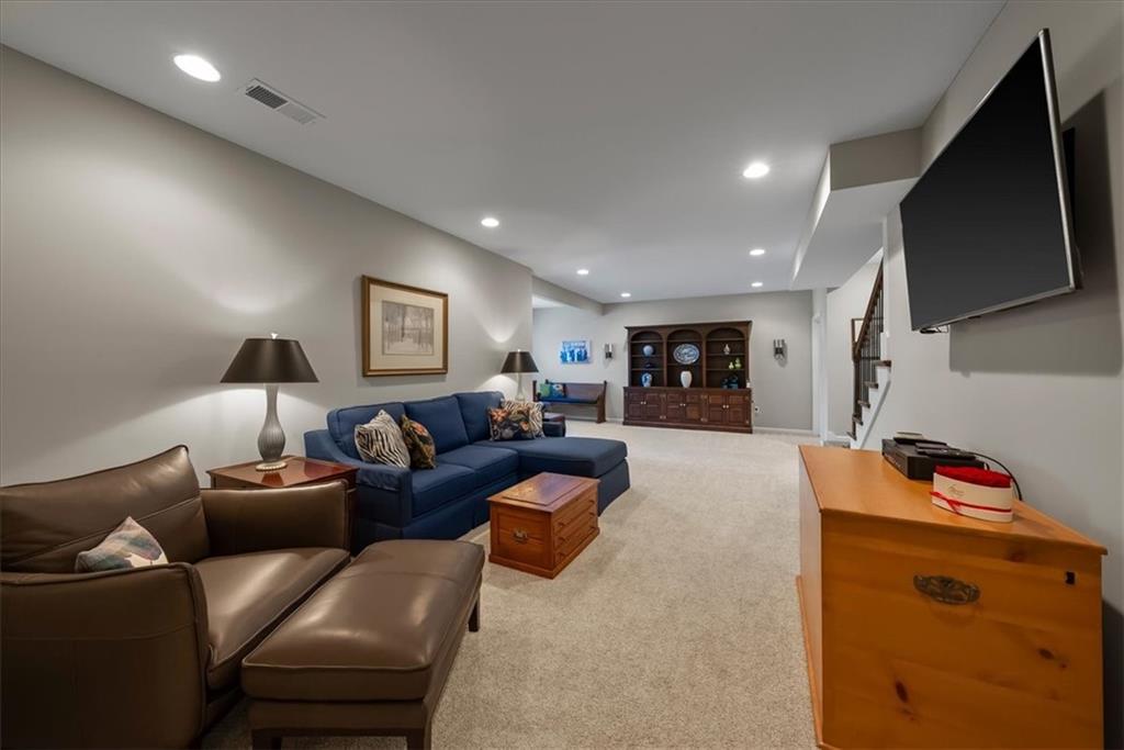 Welcome to this beautiful reverse 1.5-story villa in the Enclave at Prairie Star. This light maintenance-provided home offers 4 bedrooms, 3 full baths, and a bright open layout. The main level boasts a spacious great room with gas fireplace, a chef’s kitchen with large island, custom cabinets, granite counters, and walk-in pantry, plus the convenience of laundry and two bedrooms including the primary suite. Step outside to the screened-in patio overlooking the backyard—perfect for relaxing or entertaining. The finished lower level adds a large recreation room, two bedrooms with walk-in closets, a full bath, and plenty of storage. Move-in ready and thoughtfully designed, this home combines comfort, style, and low-maintenance living. These don't become available often. The most recent MLS sale in the subdivision was over 2 years ago so get your showing scheduled!