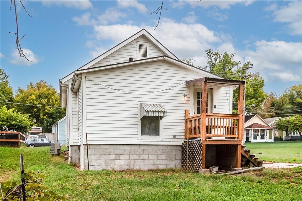 Charming 2-bedroom, 1-bath bungalow on a corner lot. This updated home features a covered front porch, main-level laundry, and a basement for additional storage. Off street parking on the side. Move-in ready, it offers comfortable living with small-town appeal. Great opportunity for a first-time homebuyer or investor.
