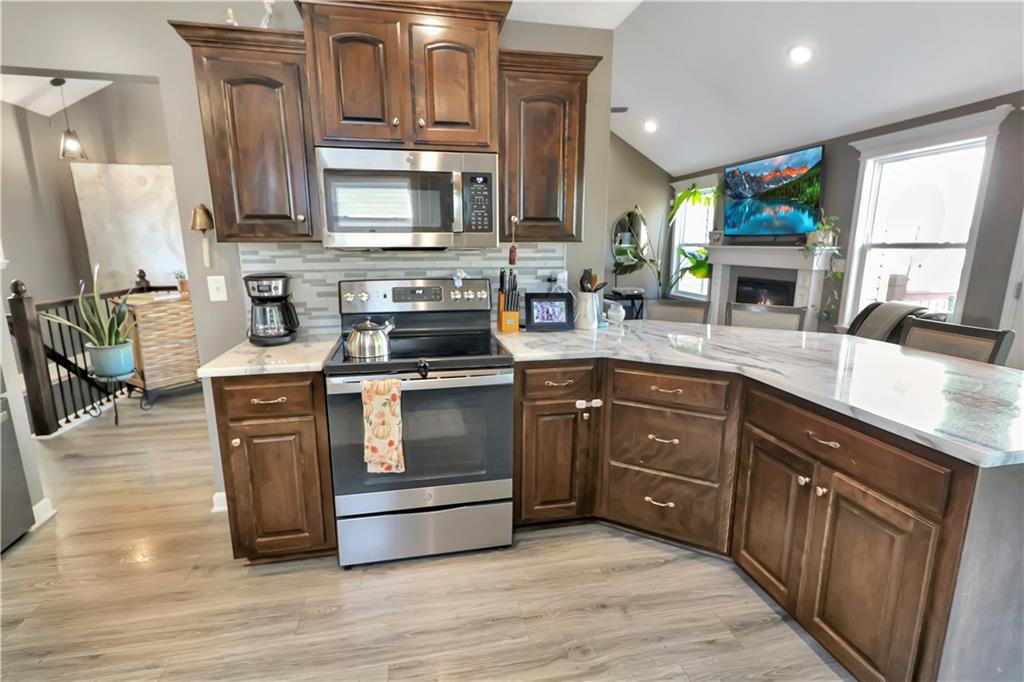 BUILT IN 2022 !!!!! NEW-ish raised ranch floorplan on a large corner lot in the perfectly located Hawthorne neighborhood of Warrensburg. Backing up to green space, this home is ideal for bird watching and peaceful mornings. The main level features three bedrooms - one of which has a very nice ensuite setup. The living room is adjacent to a smaller dining area as well as a very spacious kitchen (richly stained wood cabinets, gorgeous white marble countertops....) and an attached laundry & pantry area! The lower level has a full bathroom, bar, recreational area, walkout door to the backyard. The garage is large, huge yard, long driveway, green space behind the home.... this is a fantastic home and you will want to look at it before it's gone!