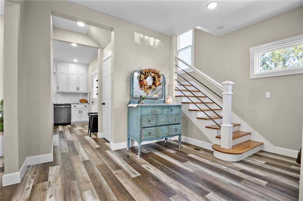 A timeless masterpiece! This home has been renovated with no expense spared, fully restored from top to bottom! You will be delighted by the new-construction feel, mixed with a historic layout and charm. This stately home features tall ceilings, luxury vinyl plank floors, and over 1,900 SQFT of living space across two levels. As you enter the home, you are welcomed into the living room, also on the main level is the formal dining area, a half bath, and the custom kitchen. The cabinets are all handmade and feature soft-close drawers. The kitchen counters are granite, with colors selected to perfectly complement the cabinetry. There is a dutch-door in the kitchen, which is something unique you certainly would not see on a new build today! Also off the kitchen is a full walk in pantry. Heading upstairs, there are three bedrooms. You enter into the hallway, where the laundry area is. Off the side there is a full bathroom, with an Onyx shower, and cabinetry to match the kitchen. Heading into the master, it has a walk in closet, and full on suite bathroom as well finished in the same style. The basement allows for a ton of extra storage space, with updated systems, gas heat, and a tankless water heater. The 0.35 acre corner lot is a gardener's paradise. There are many raised garden beds featuring everything from peppers to raspberries. The home has two porches, one that wraps around the front, facing south and east. Another just off the kitchen. This home is the perfect place to entertain, with tons of indoor and outdoor space, with unmatched custom construction quality! Take a look today! The windows and hvac are under transferable warranty!