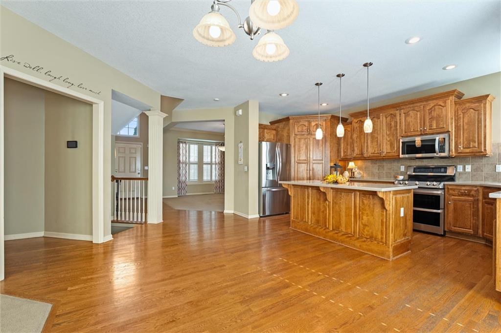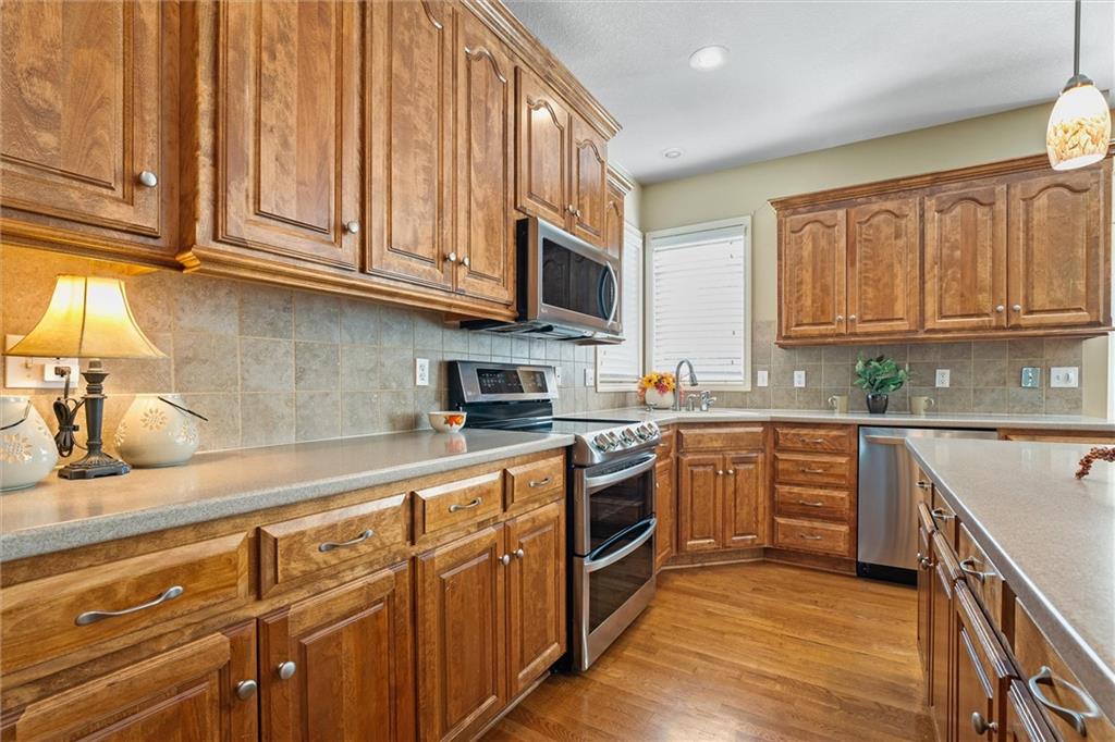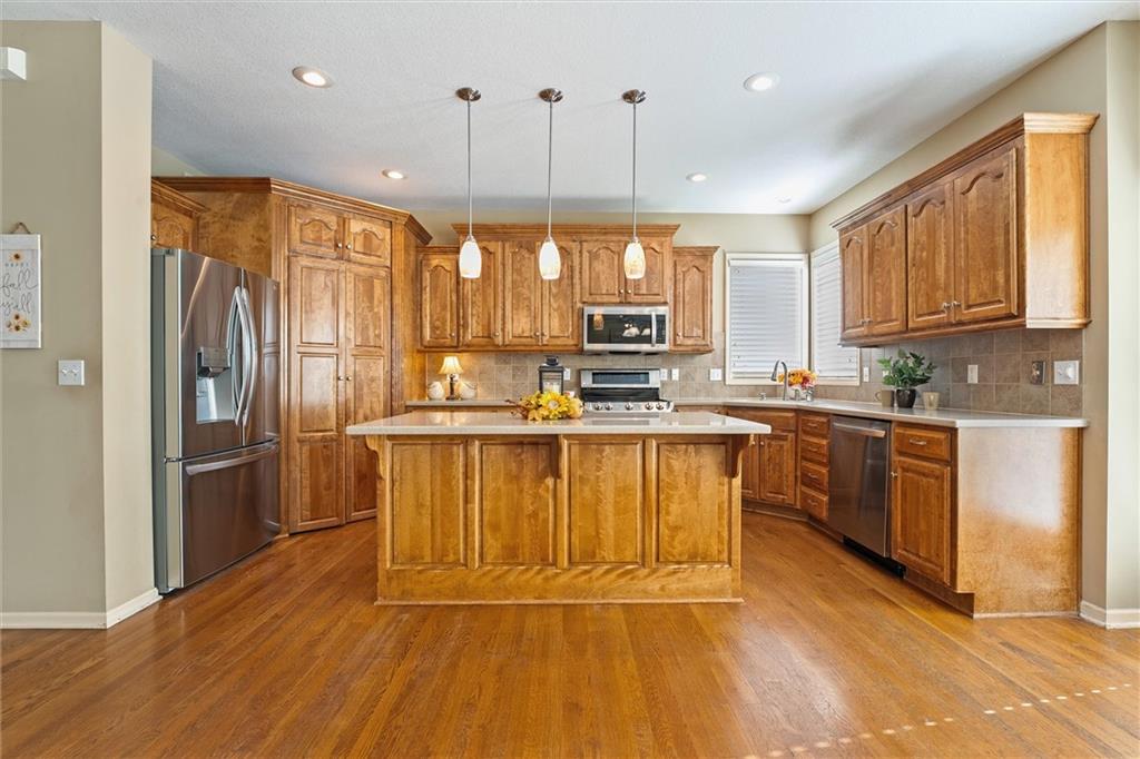 This Home Has It All — and Is Priced to sell! Step into the soaring entryway that opens to a formal dining room, setting the stage for this spacious and beautifully maintained home. Gleaming hardwood floors lead you into the open kitchen featuring a large island, stained pull-out cabinets, a pantry, and stainless steel appliances. The kitchen flows seamlessly into the inviting family room with a cozy fireplace and expansive windows that fill the space with natural light. Plantation shutters are throughout the main level. Upstairs, the primary suite is a true retreat — complete with a corner jetted tub, separate shower with two shower heads, double vanity, massive walk-in closet, and hidden storage. The second bedroom includes its own private bath, while the third and fourth bedrooms share a Jack-and-Jill style bath with individual vanities and walk-in closets. The laundry room is conveniently located on the second level near all the bedrooms and has waterlines in the cabinet to add a sink. The finished basement offers the perfect entertainment space with a pool table area, wet bar, second living room with fireplace, full bath, and a fifth bedroom with daylight windows. The oversized garage features high ceilings, built-in cabinets and sink, a workbench, extra storage space, and super-quiet garage door openers. Outside, enjoy impeccably maintained landscaping with a lush yard and sprinkler system. 1-year-old class 4 impact-resistant roof! Located close to Garrett Park, award-winning schools, and with easy K-7 highway access, this home truly has it all. Come see this amazing home and “Fall” in love!