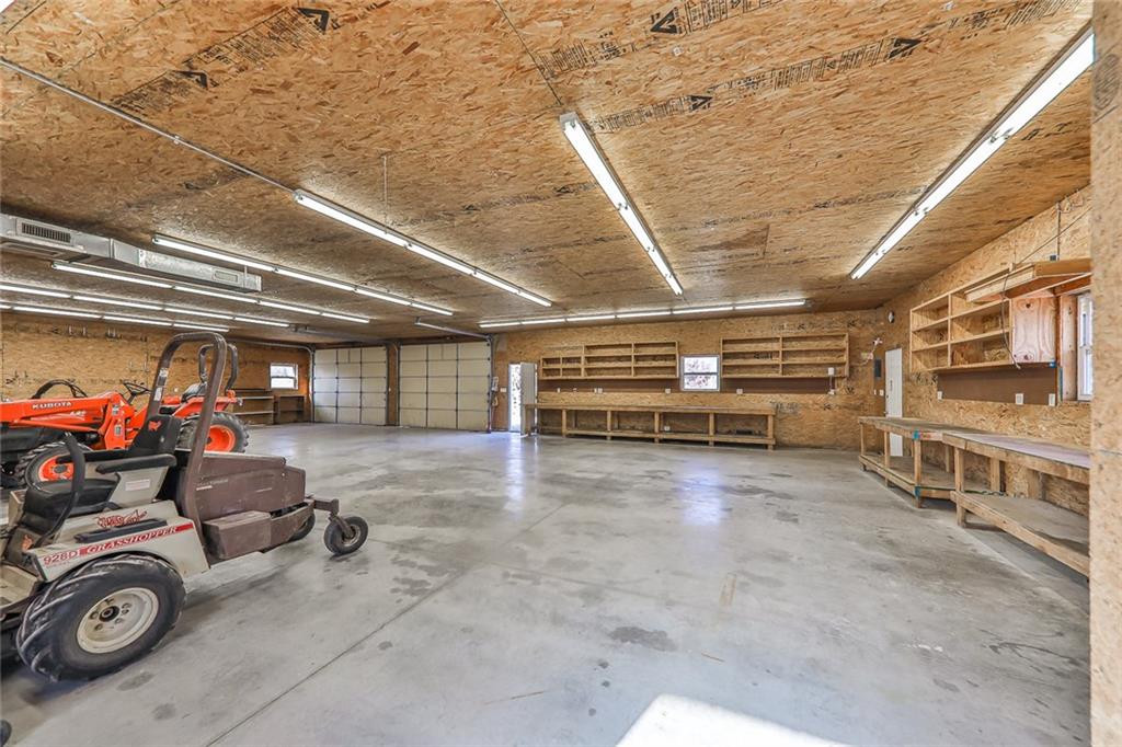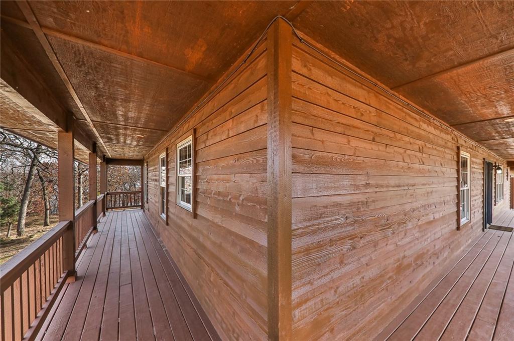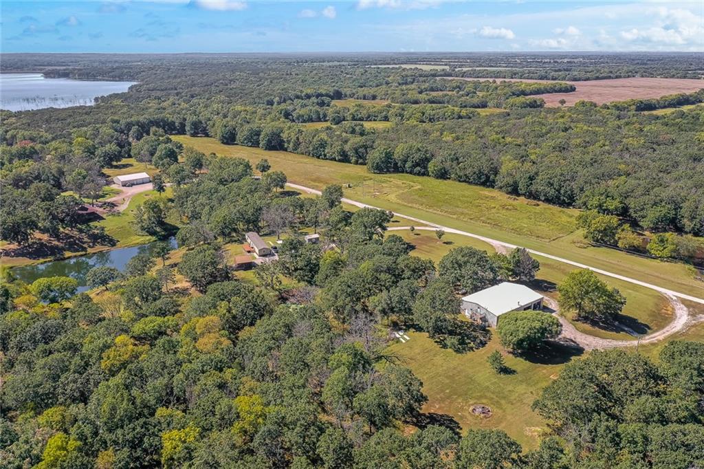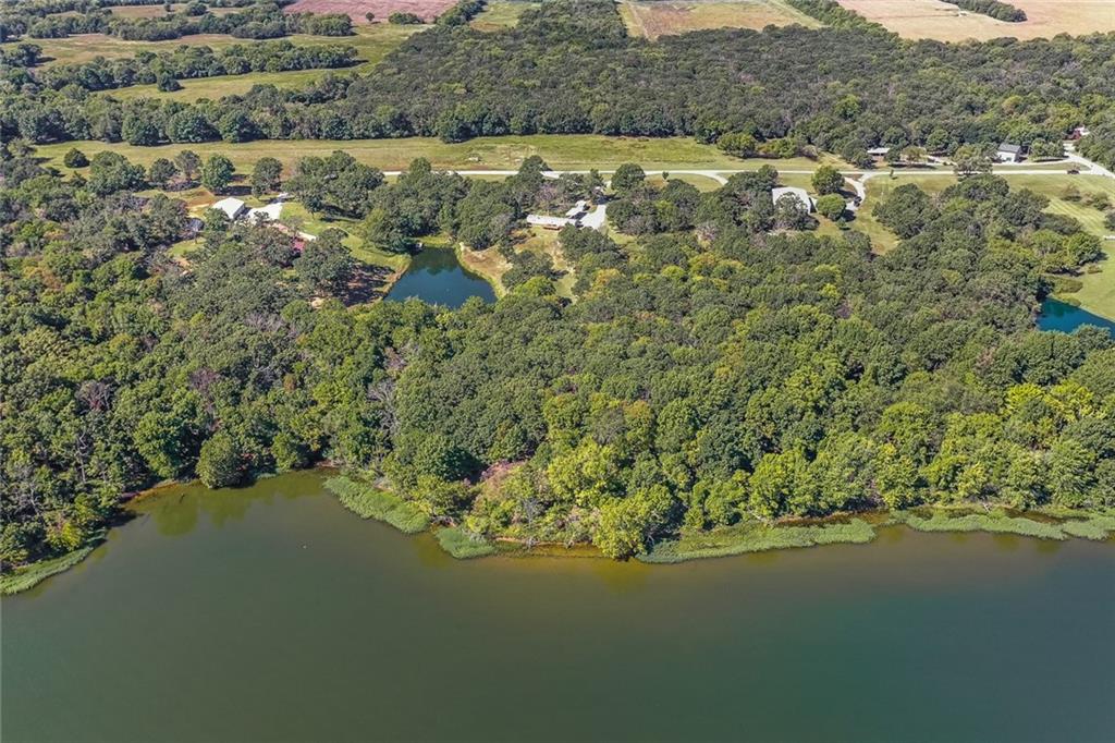 This second-tier Big Hill Lake property, still owned by the same family that built it, offers 26.4 acres with multiple residences, extensive shop space, and direct access to public land. The main home features cedar siding and 1,866 sq ft with 2 bedrooms, 3 bathrooms, a full basement, and an attached 2-car garage. The home includes a geothermal pond loop central heat and air system and a pellet heater for added comfort. The primary bedroom has its own private door leading to the wraparound porch, providing views of the trees and Big Hill Lake just beyond. The big heated and cooled 60×40 shop includes 3 large overhead doors, a bathroom, built-in workbenches, and shelving for tools, equipment, or projects. A fully enclosed horse shed provides space for livestock supplies or storage. The huge 75×50 shop offers full living quarters with central heat and air on the main level, complete with a kitchen and full bathroom, and an additional bedroom and half bath upstairs. This shop features three oversized overhead doors, a new 40’ radiant tube heater, and a wood-burning stove, making it ideal for vehicles, equipment, or multi-use workspace. A second residence on the property—a 1,280 sq ft single-wide home with 3 bedrooms and 2 bathrooms—adds flexibility for guests, extended family, or rental income. It includes a detached garage, carport, shed, and fenced yard. Outdoor features include a private pond with an estimated depth of 32 feet and a dock, perfect for fishing or recreation. The property also has its own natural gas well. More than half a mile of the land borders U.S. Army Corps of Engineers public use land surrounding Big Hill Lake, offering direct access to public ground and trails. This Cherryvale acreage provides a rare combination of lake proximity, multiple living spaces, outbuildings, and acreage—ideal for a homestead, retreat, or anyone needing substantial shop and storage space.