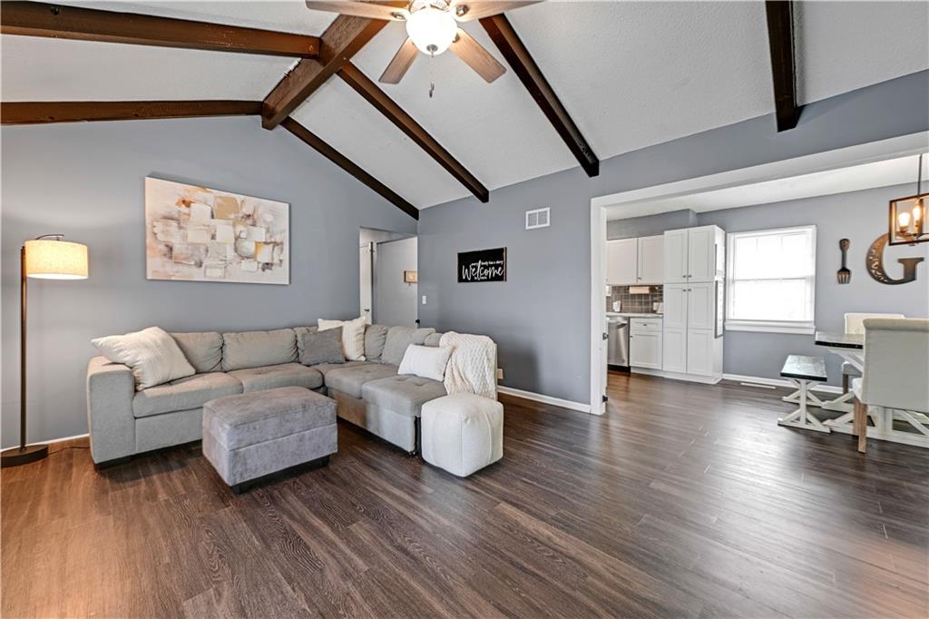There's so much to love about this 3 bedroom, 2 bath raised ranch that sits on a large lot in a tranquil little Belton community. Situated on a long cul-de-sac, it's the perfect blend of country living and all the conveniences of suburban life. The heart of this home is the wonderfully inviting great room with its beautiful beamed, vaulted ceiling and white brick fireplace that opens to an updated kitchen with large dining area. Or step out to the expansive deck and backyard to soak in all the beauty nature has to offer. Inside or out, it offers the perfect gathering space for friends and family! With hard surface flooring throughout the main level, clean-up is a breeze! The primary ensuite is indeed a sweet retreat with its private bath and beautiful tiled shower. Two more bedrooms and a 2nd full bath round out the easy living layout. But don't forget to check out the finished lower level offering another large family room plus bonus room for an office, home gym, or storage. Welcome home!
