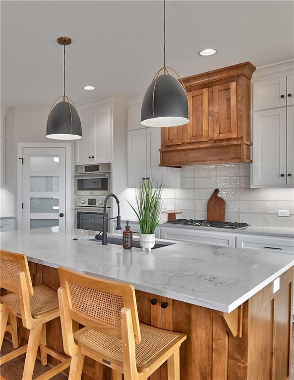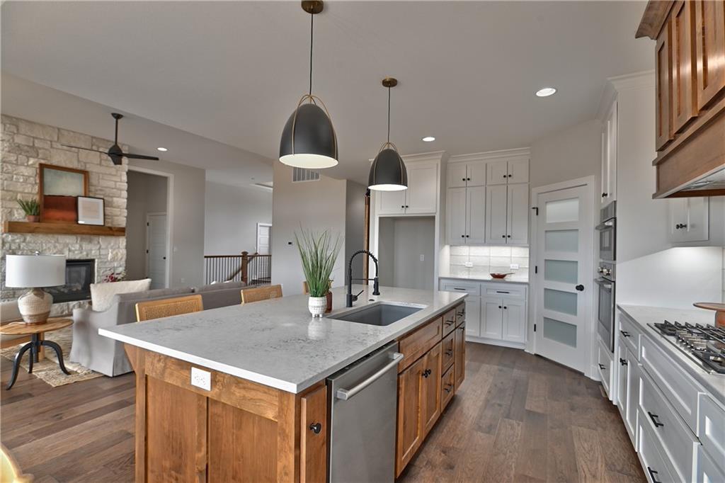 HOME IS CURRENTLY UNDER CONSTRUCTION AND AT TRIM STAGE! PICTURES ARE OF FORMER MODEL! Stunning Reverse 1.5-Story by BC Residential Homes! This 4-bedroom, 3.5-bath, 3,207 sq. ft. home showcases high-quality craftsmanship and thoughtful design throughout. The main level features a luxurious primary suite, convenient laundry, and true zero-entry access at the front door, garage, and master shower. Enjoy a gourmet kitchen with a huge walk-in pantry and handy grocery door, plus a spacious lower level with a home bar, theater area, and suspended slab storage complete with its own garage door and opener. Perfectly situated on a premium lot backing to greenspace in the highly desired Sundance Ridge community—served by top-rated Blue Valley Schools.