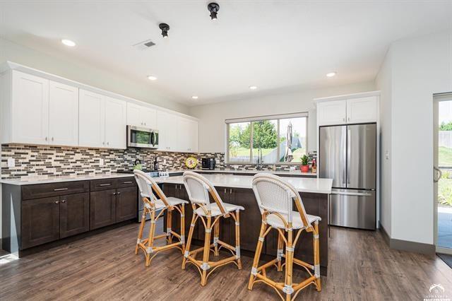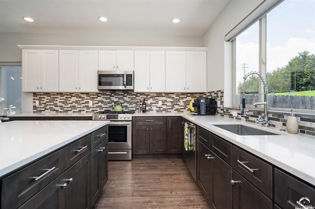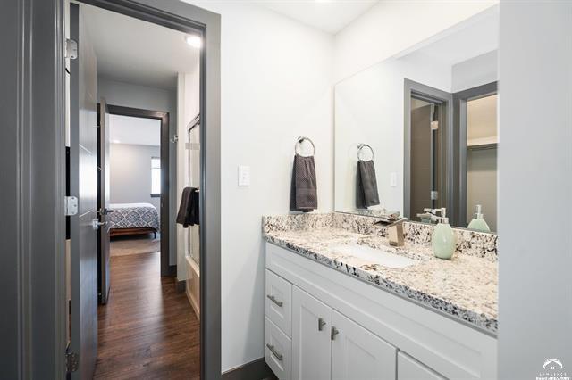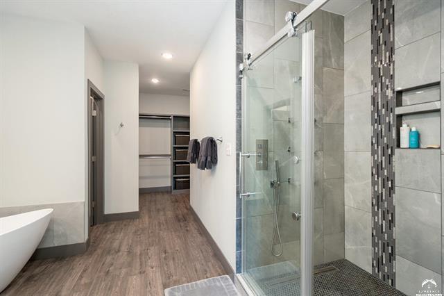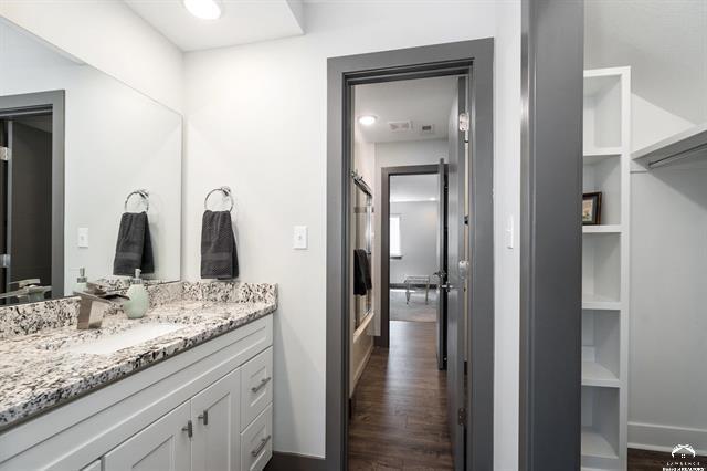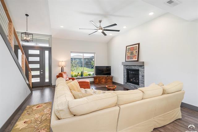 Beautifully designed and move-in ready, this 3-bedroom, 3-bath home in the desirable Langston Hughes community offers the perfect blend of comfort and style. Step inside to a bright, open floor plan with soaring ceilings, a cozy fireplace, and expansive windows that bring in natural light. The chef’s kitchen features quartz countertops, custom tile backsplash, stainless steel appliances, and a large island with seating perfect for gatherings. The main-level primary suite is a true retreat with a spa-like ensuite showcasing a soaking tub, oversized walk-in shower with custom tile detail, and double vanities. Upstairs, two generously sized bedrooms share a Jack & Jill bathroom, each with its own large closet. Outside, enjoy beautifully landscaped front and back yards with curated flower beds, a full irrigation system, and a spacious patio ideal for outdoor entertaining. The fenced yard, stone retaining wall, and mature plantings provide both beauty and privacy. Built just three years ago, this home combines modern amenities with thoughtful details inside and out. Schedule your private showing today!