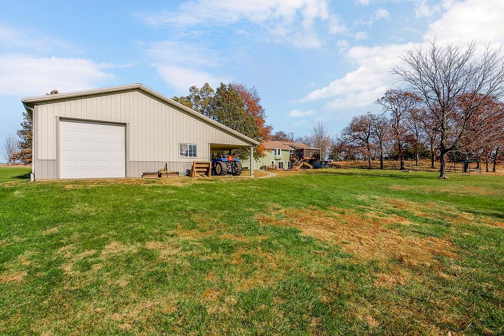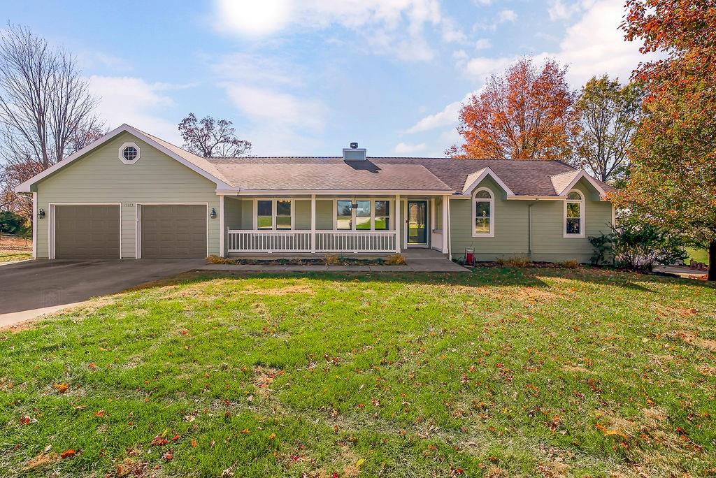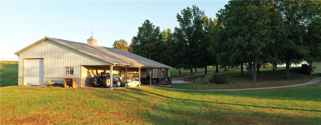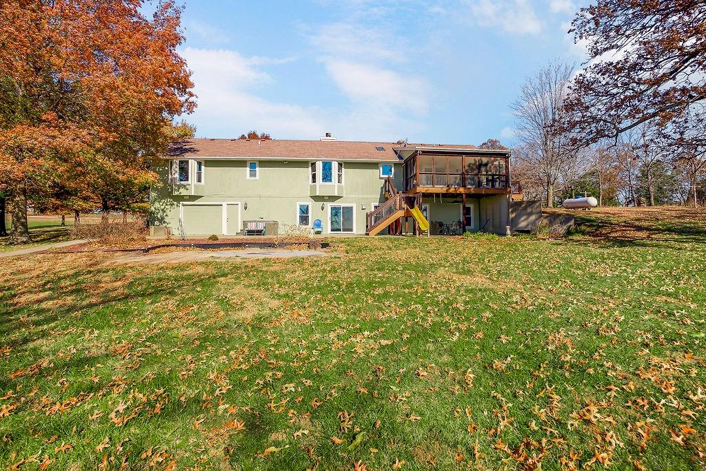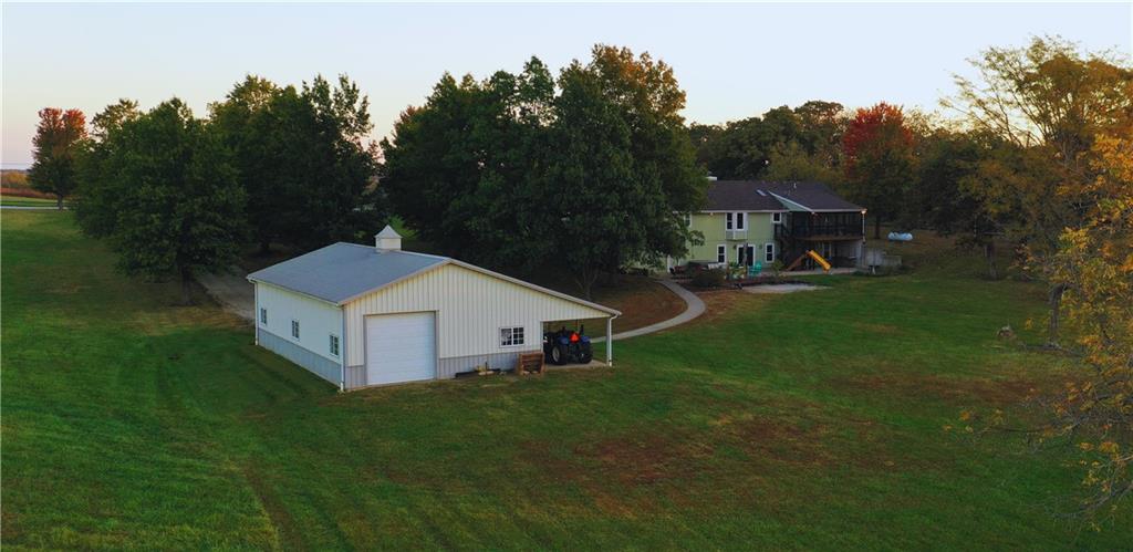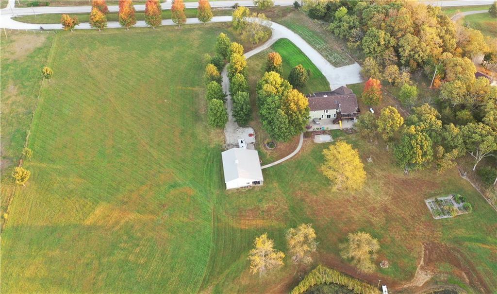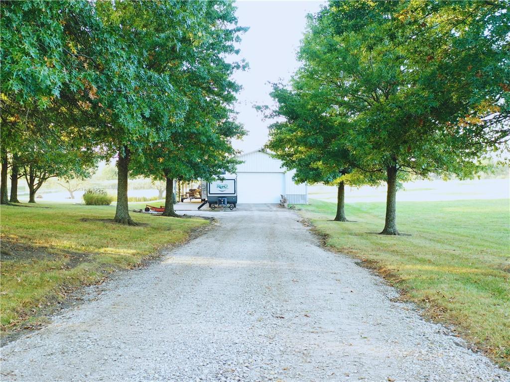 From the moment you turn onto the red maple lined drive, you're welcomed by a canopy of seasonal color that sets the tone for this tranquil country property. Nestled on 14.4 groomed acres, this 4-bedroom reverse ranch offers the space and setting to bring your rural lifestyle dreams to life—whether you're hosting extended family, entertaining the neighborhood, or exploring the possibilities of a hobby farm. The home has been thoughtfully updated with new exterior paint, exterior doors, updated flooring and carpet, lifetime warranty windows, and a remodeled kitchen featuring upscaled granite countertops. The elevated screened porch is a favorite spot to start or end your day—sip your morning coffee as the sun dances across the backyard pond or gather for evening chats enjoying the country air. Downstairs, the walk-out basement offers flexible space for entertaining, with an overhead door opening to a massive patio—ideal for hosting outdoor parties or family celebrations. A built-in slide adds fun for the kids, while adults can unwind in the hot tub or float in the seasonal above-ground pool. Whether you're casting a line in the stocked pond, watching wildlife, or teaching the next generation to fish, the pond is definitely a year-round source of fun & relaxation. Off the southwest corner of the home, the 30' x 50' insulated shop with pull-through overhead doors and a 12' x 50' lean-to that offers endless possibilities. Use it for equipment storage, a workshop, or convert it into a studio or gym. With power, insulation, and easy access, it’s ready to support all your hobbies, business ventures, or weekend projects. Located just minutes from Paola and with easy access to Kansas City, this property offers the peace of country living without sacrificing convenience. This is truly a place built for memory-making—and it's ready for the next chapter!