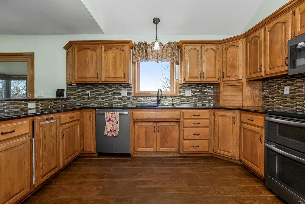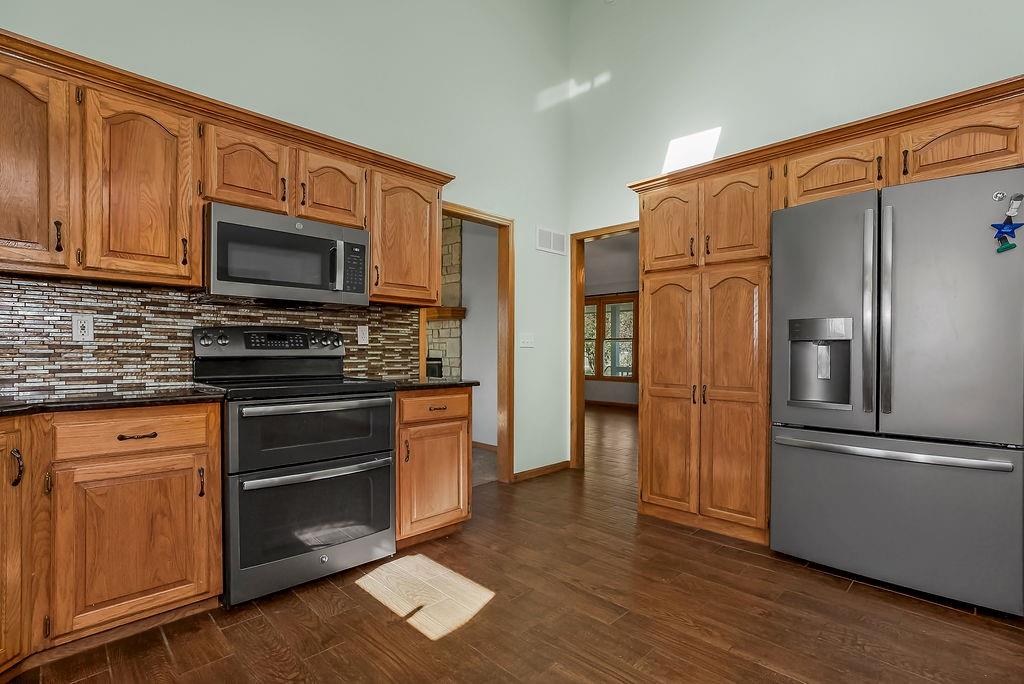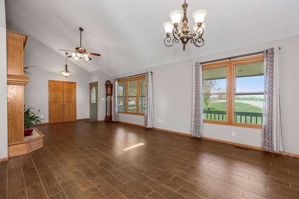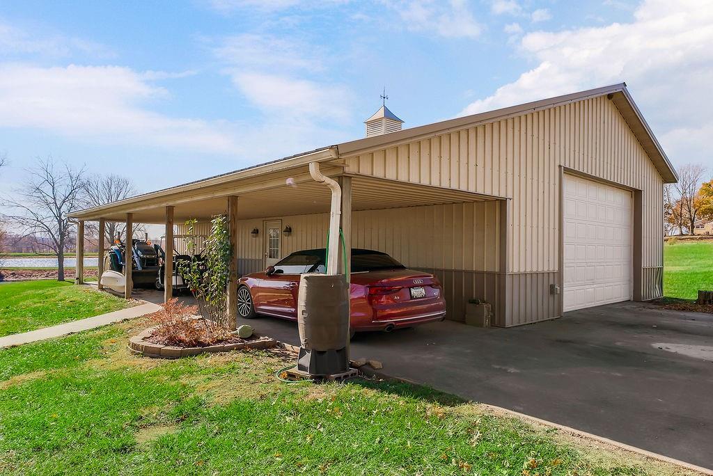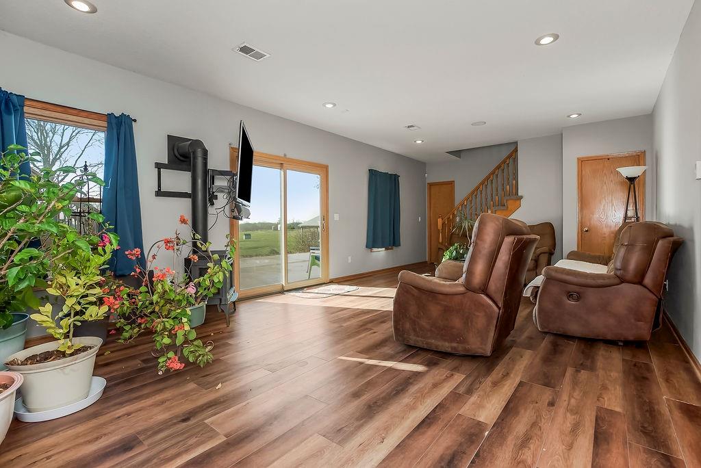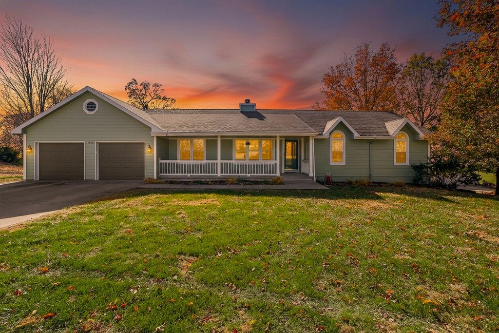 From the moment you turn onto the red maple lined drive, you're welcomed by a canopy of seasonal color that sets the tone for this tranquil country property. Nestled on 14.4 groomed acres, this 4-bedroom reverse ranch offers the space and setting to bring your rural lifestyle dreams to life—whether you're hosting extended family, entertaining the neighborhood, or exploring the possibilities of a hobby farm. The home has been thoughtfully updated with new exterior paint, exterior doors, updated flooring and carpet, lifetime warranty windows, and a remodeled kitchen featuring upscaled granite countertops. The elevated screened porch is a favorite spot to start or end your day—sip your morning coffee as the sun dances across the backyard pond or gather for evening chats enjoying the country air. Downstairs, the walk-out basement offers flexible space for entertaining, with an overhead door opening to a massive patio—ideal for hosting outdoor parties or family celebrations. A built-in slide adds fun for the kids, while adults can unwind in the hot tub or float in the seasonal above-ground pool. Whether you're casting a line in the stocked pond, watching wildlife, or teaching the next generation to fish, the pond is definitely a year-round source of fun & relaxation. Off the southwest corner of the home, the 30' x 50' insulated shop with pull-through overhead doors and a 12' x 50' lean-to that offers endless possibilities. Use it for equipment storage, a workshop, or convert it into a studio or gym. With power, insulation, and easy access, it’s ready to support all your hobbies, business ventures, or weekend projects. Located just minutes from Paola and with easy access to Kansas City, this property offers the peace of country living without sacrificing convenience. This is truly a place built for memory-making—and it's ready for the next chapter!