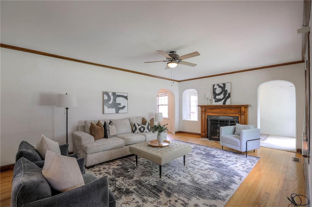 Welcome home to 722 E. Meyer, a charming spacious Tudor in the heart of Brookside. Archways throughout only lend to the charm of your formal living room with fireplace leading to the enclosed porch with exposed brick. Formal dining room leads to recently renovated eat-in kitchen with newer appliances (ALL STAY!), tons of storage, and access to the back deck. Main floor bedroom and full bath allow for multi-generational living. Upstairs, find 3 generously sized bedrooms with incredible closet space. Finished basement is the perfect recreation room, including a powder bath and attached tandem garage. Fabulous location close to St. Peter's, shops and restaurants. BRAND NEW AC AND BRAND NEW CONCRETE PATIO AND BACK STEPS!
