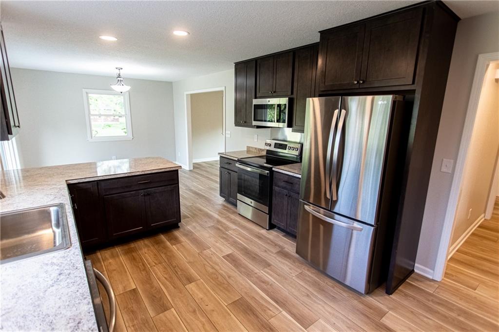 Are You Ready to move your Family into a completely remodeled 3 bedroom 2 1/2 baths home with over 3100 square feet of living space in a VERY Quiet Neighborhood? This home was taken down to the studs on the inside and everything was replaced! New sheet rock throughout, new doors throughout, new flooring throughout, new wiring and plumbing and very Good Insulation throughout for Lower Utility Bills! It has a brand-new kitchen and 2 new bathrooms! Every inch of the inside of this home is brand new and has never been lived in! Beautiful luxury vinyl plank runs throughout the HUGE Living Room and Beautiful Kitchen on the Main level. On the Sleeping Level, the Spacious master bedroom suite with brand new carpet has a new master bath with a huge walk in decorator tile shower and beautiful tile floor. The other two other bedrooms also have brand new carpet plus bedroom #3 has a walk-in closet! 2nd upstairs full bathroom has a tub shower and beautiful tile floors also! The first lower level has a bonus room and a very roomy laundry room both have plenty of natural light and luxury vinal plank floors! Head down to the basement, where there is another 1/2 bath, another bonus room plus 2 large areas for your family to enjoy game night or snuggle under the blankets and watch movies!! Like to BBQ? Brand New Decking on this HUGE Deck, just off the Kitchen and Dining Room! The very roomy 2 car garage has vents from the furnace to keep your car warm in the winter if you would like! Need room for your toys? There's a 20 by 20 insulated extra garage in the back that has a long concrete driveway, a perfect place to park a Boat or an RV!. This home Sits on a large lot and is situated in a Great area of Drexel with very expensive and beautiful homes surrounding it. Quiet Small-Town Living but easy access to Hwy 69 and Overland Park! This Home Qualifies for USDA Financing! NO PMI or Down Payment & Low Closing