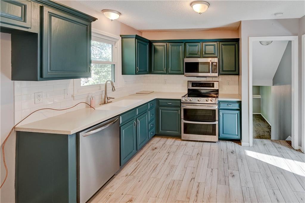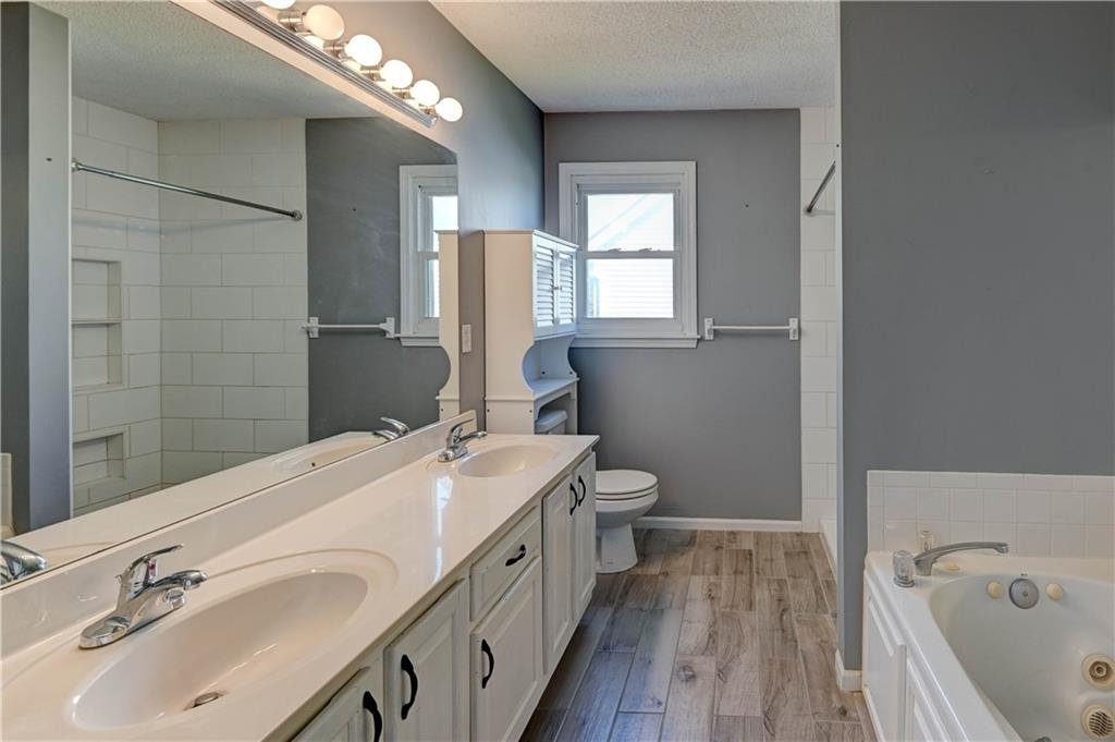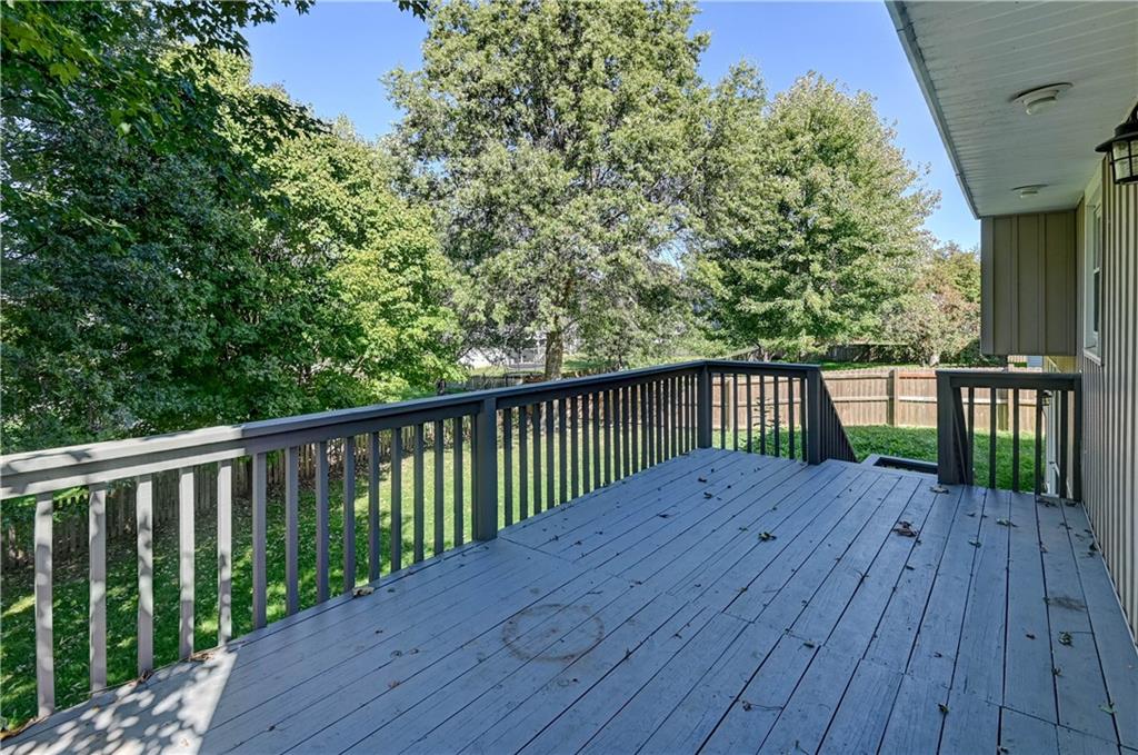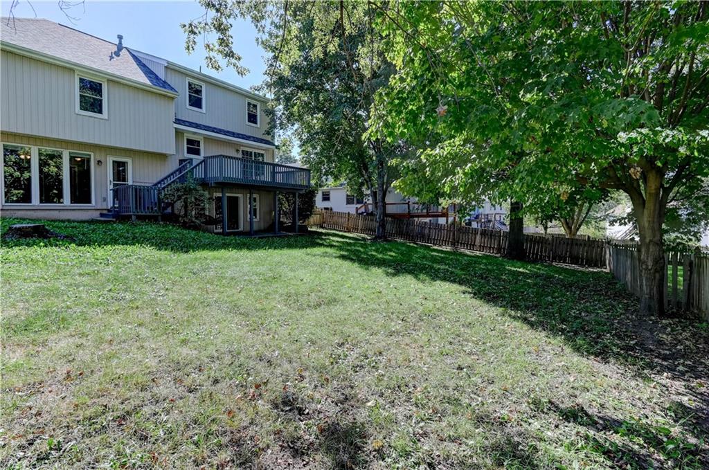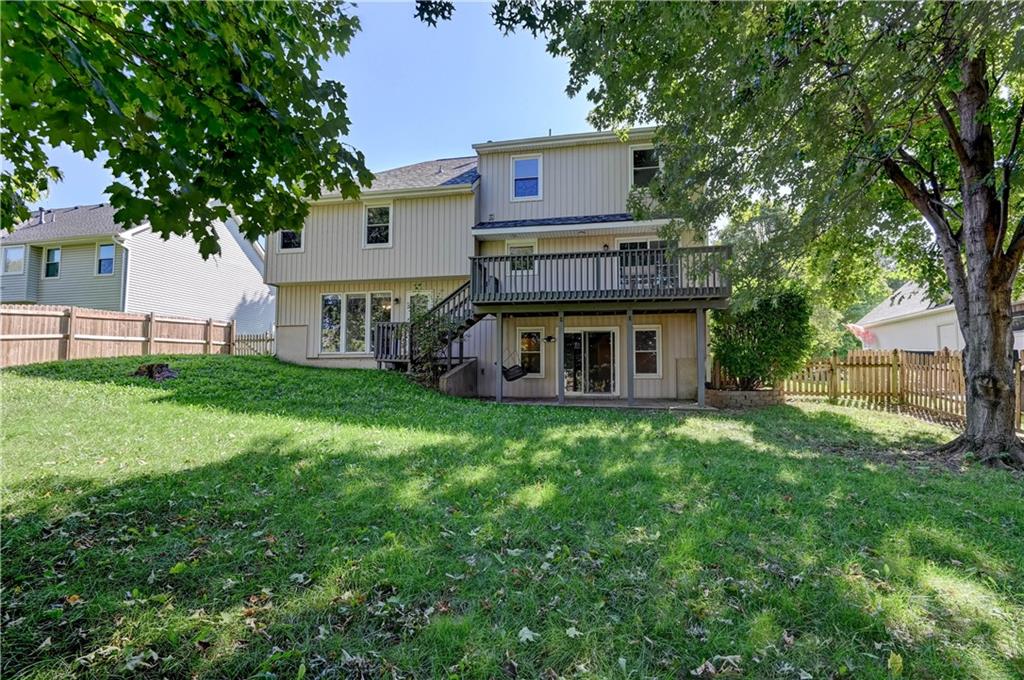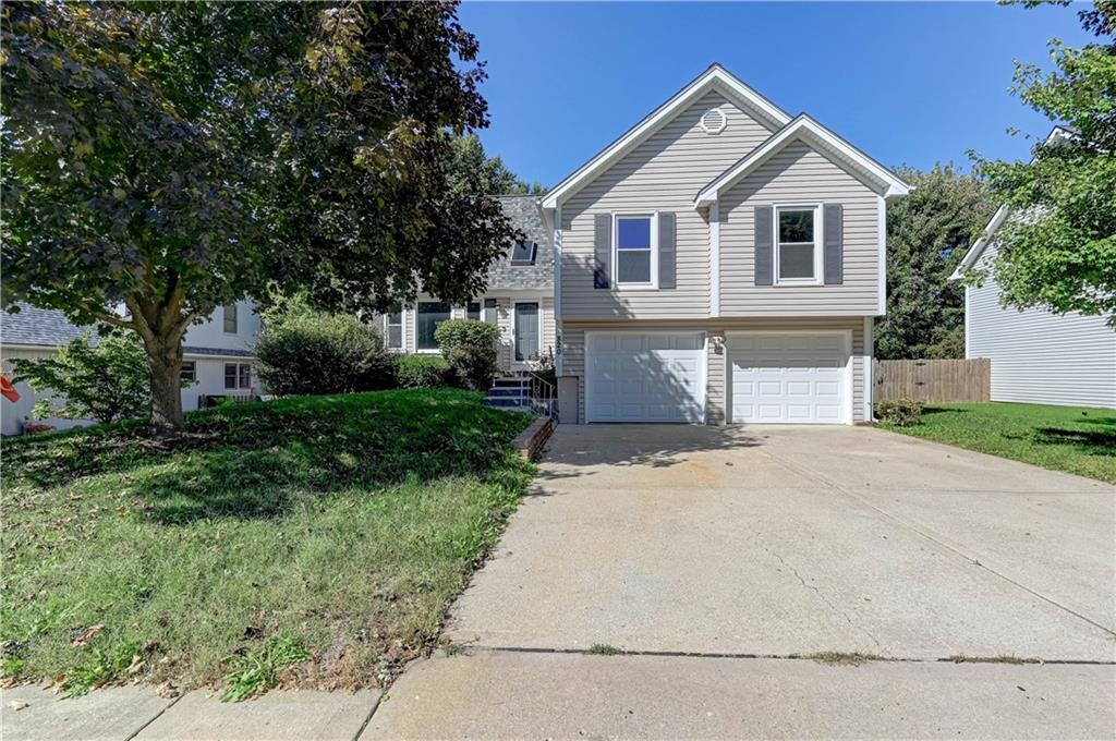 Liberty School District, Clay Meadows subdivision. This true 4 bedroom tri-level home has both upper and lower level finished walk-out basement and 2 fireplaces. HVAC high-efficiency unit is less than a year old. New Roof in fall of 2024. New garage doors and openers in fall of 2024. Large deck off of kitchen plus lower covered patio. Fully fenced back yard. The kitchen has newer counter tops and stainless appliances. Lots of natural lighting in the family room with a large picture window and 3 skylights. Spacious primary suite with soaker tub plus a walk-in shower, a double vanity, a walk-in closet and vaulted ceilings.