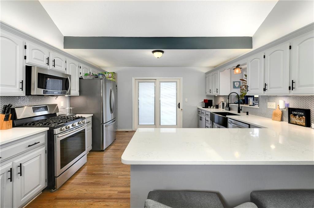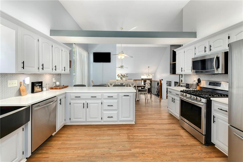 Step into the Greenwood life, where you get that small town vibe, while still being close to big city amenities. Greenwood was ranked the safest city in Missouri in 2017, and still continues to 2025 as the third safest city in Missouri. What better place to raise a family. With this spacious four bedroom and three full bath this California split designed house is sure to please the next owner. With a fully finished walk out basement with new laminate flooring, and fresh paint throughout. A sub-basement is also included for extra storage, exercise room, etc. Within the last three years the kitchen has been updated with painted cabinets, quartz countertops, herringbone backsplash, and all new appliances. The kitchen is spacious as well as a large beautiful living room with a fireplace, accompanied by a large Primary Bedroom that boasts an updated accent wall, shiplap, and electric fireplace. All new carpet in the bedrooms with real hardwood flooring in the kitchen and hallway. This house features many updates. Don't miss out on this gorgeous house because it won't last long.