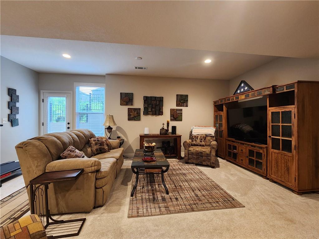 WONDERFUL Reverse Ranch home on cul-de-sac in the desired Seven Bridges Neighborhood! Walk inside this warm home & make it your own! The living room is open to the kitchen and dining areas- Great for entertaining! The living room with the vaulted ceilings, floor-to-ceiling windows, & stone fireplace makes a perfect sitting area to enjoy while overlooking the kitchen. The Kitchen is lovely with the large island, painted cabinets, gold hardware, gas stove, stainless appliances, and open to the dining area with additional floor-to-ceiling windows that walk out to the beautiful, fenced yard with sprinkler system. The MBR is conveniently located on the main floor, along with the laundry room. Bonus: make hauling groceries inside easy with just a few steps from the garage to the kitchen. The basement rec room is nicely finished with 2 additional bedrooms, full bathroom & ample storage areas that walk out to the lower patio. Not only is the home fantastic, so is the Neighborhood-- with a Community clubhouse, Party Room, Play Area, Swimming Pool, Tennis Courts, Trails & Gorgeous entrance waterfall.